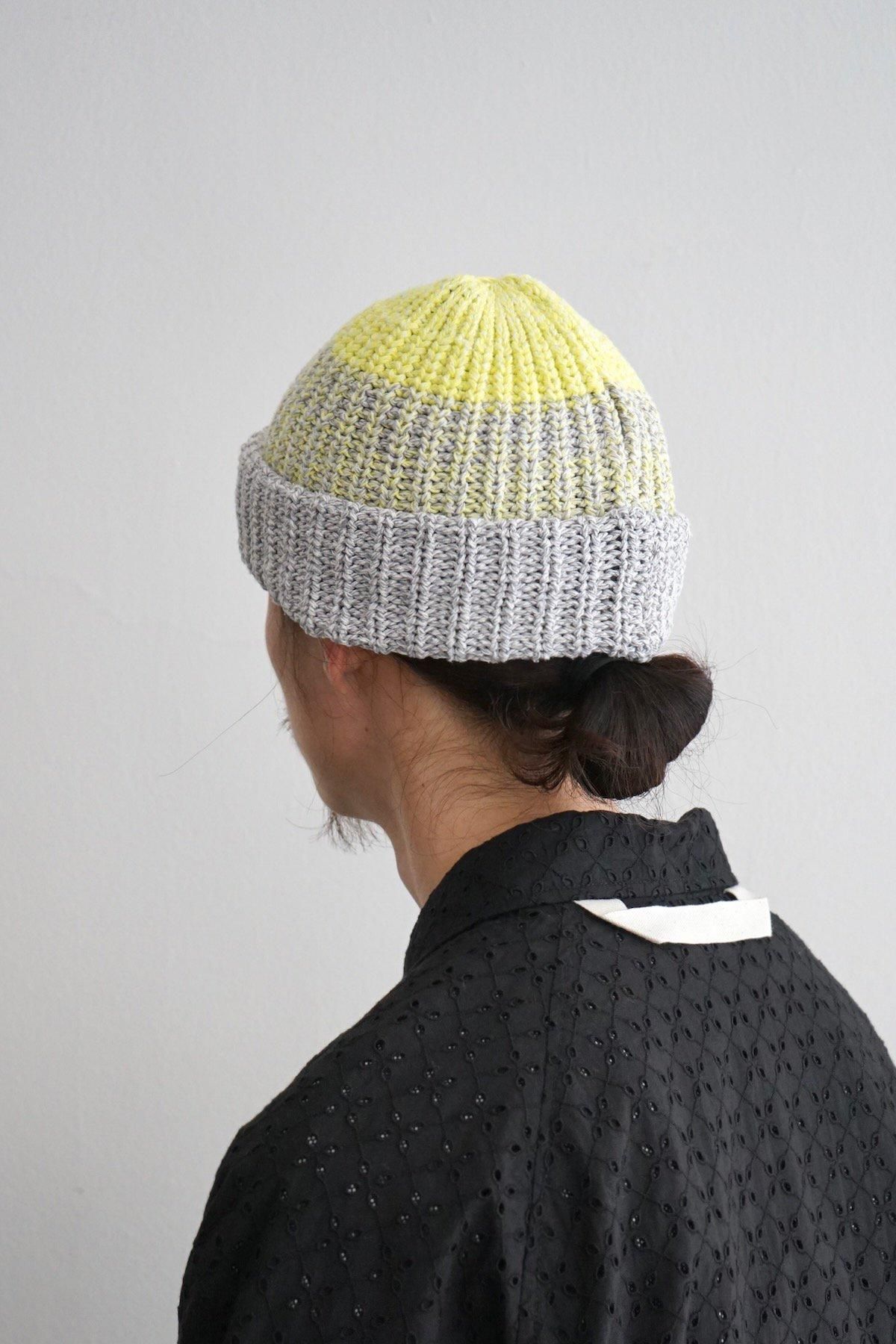 表情豊かなシルクと、特殊加工を施したコットンを、撚り合わせ編み立てしたニット帽。