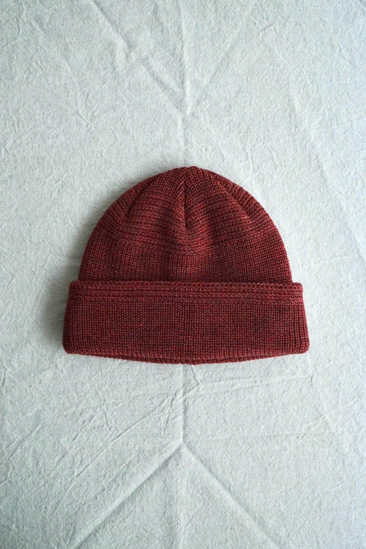 程良い光沢感と弾力がありソフトな肌触りのニット帽。メリノウールとファインメリノウールをブレンドしたハイグレード糸で編み立てました。