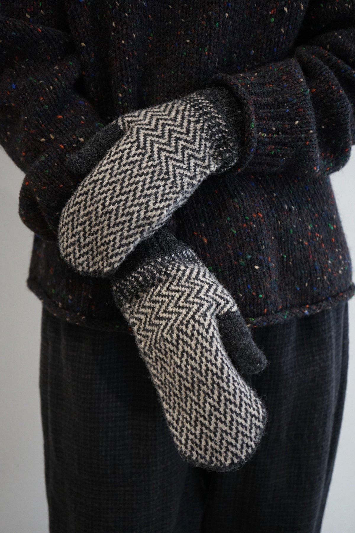 TOAST / Zig Zag Jacquard Mittens / Graphite