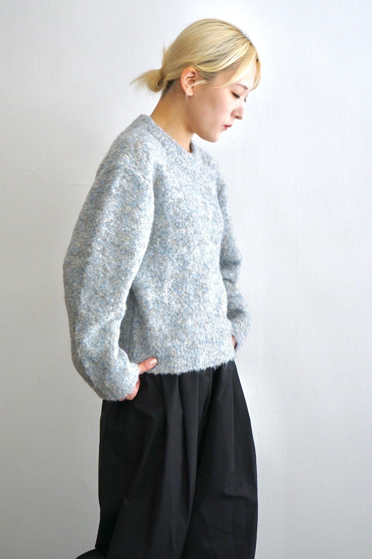 AMOMENTO / Mix Boucle Crop Knit / Blue