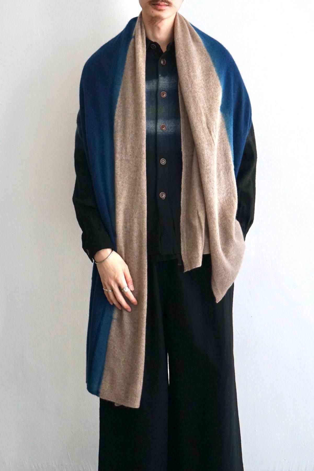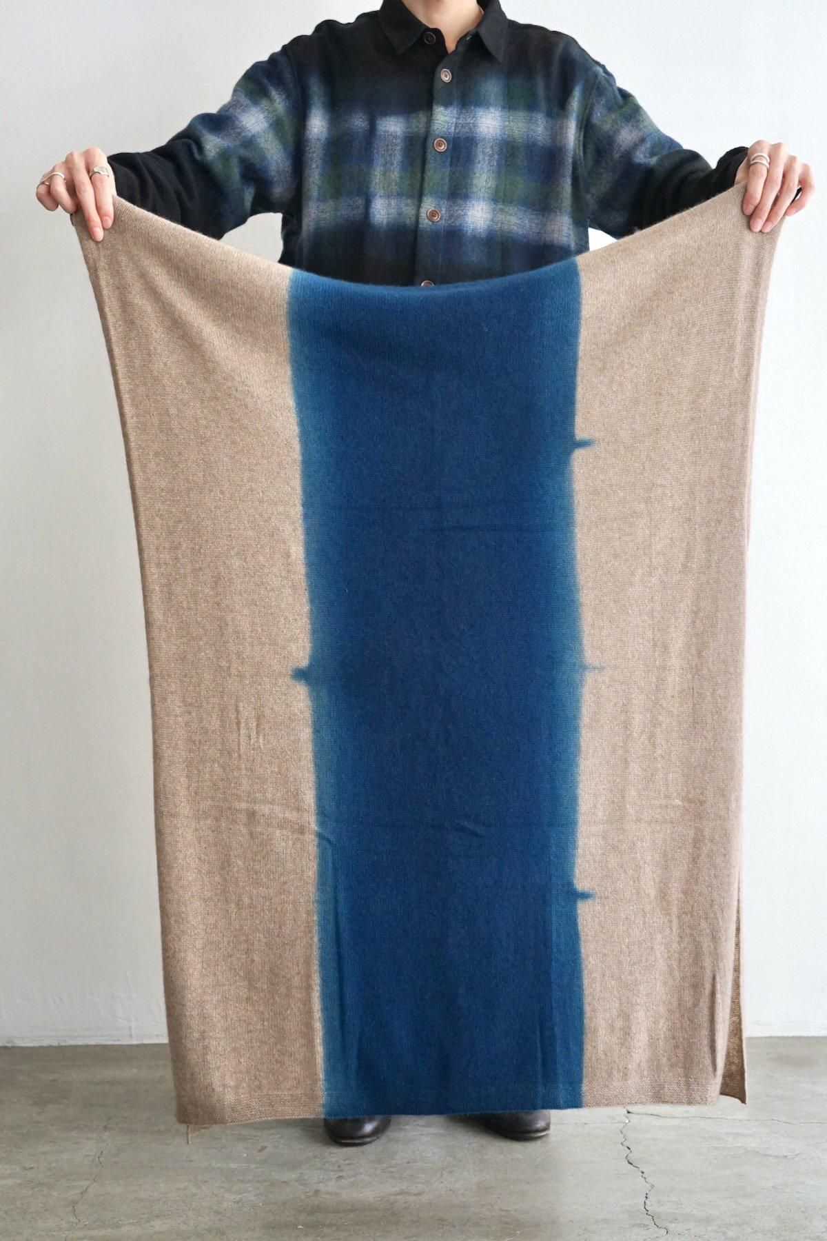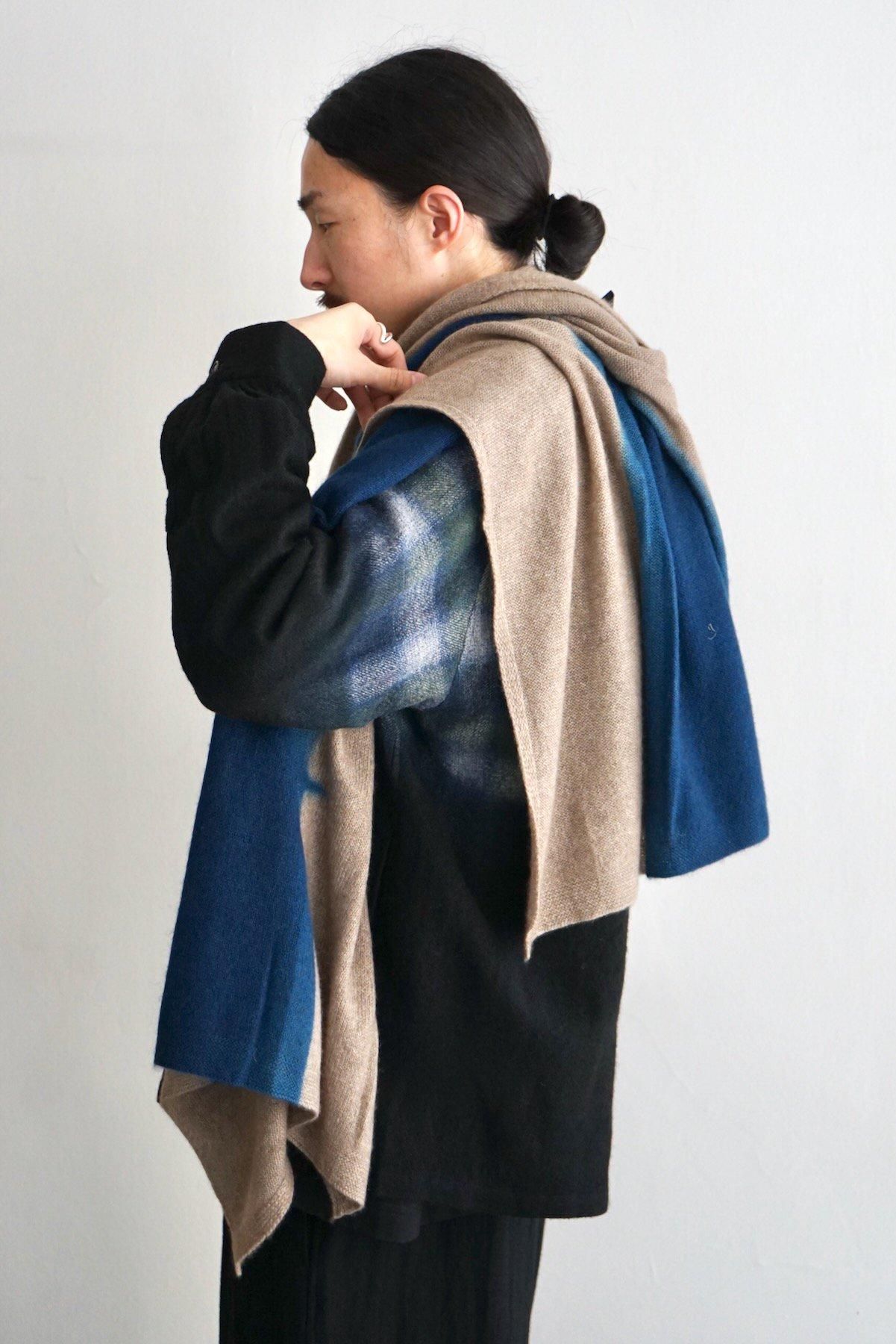 suzusan / Cashmere Knit Shawl / Dark Blue x Light Coffee