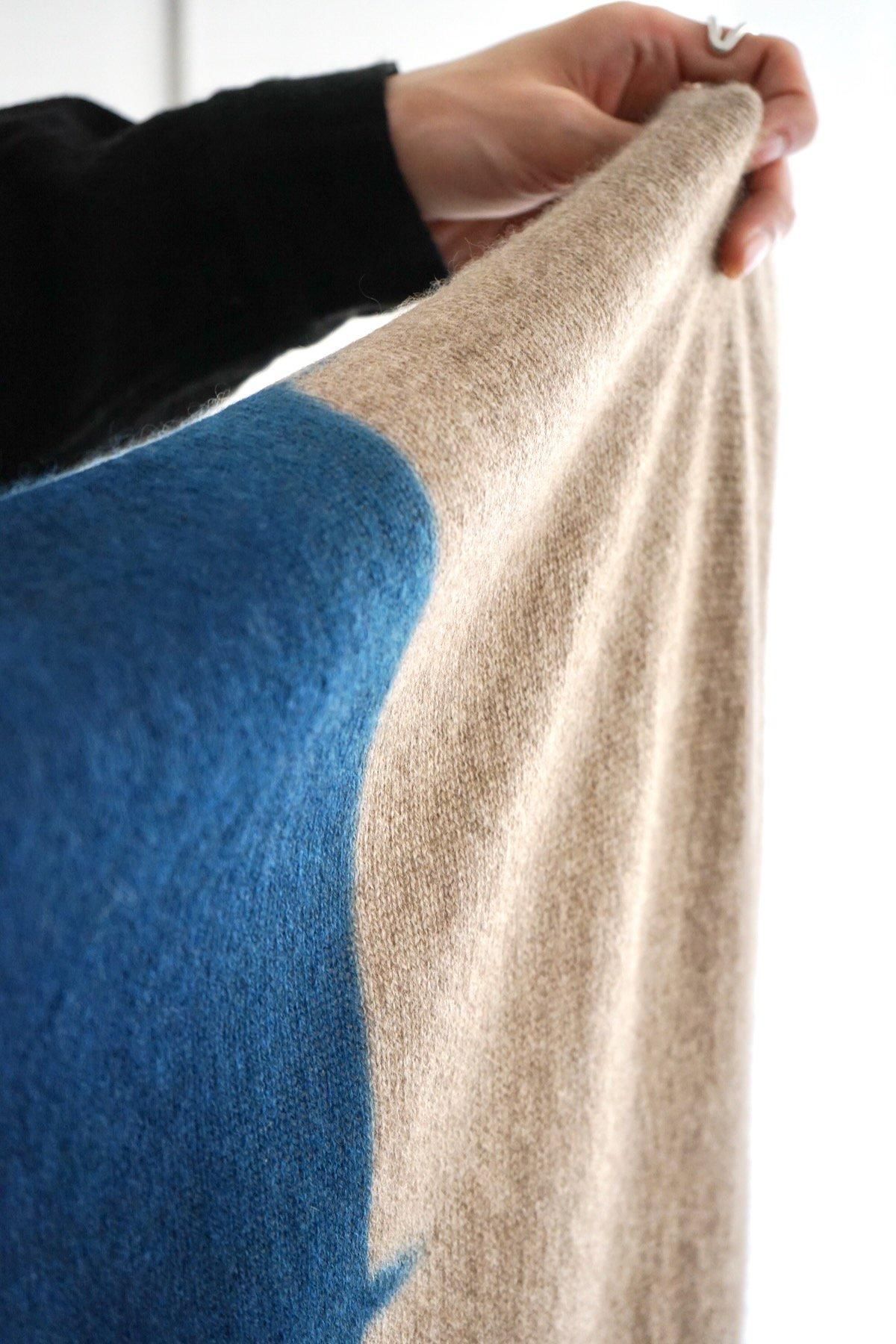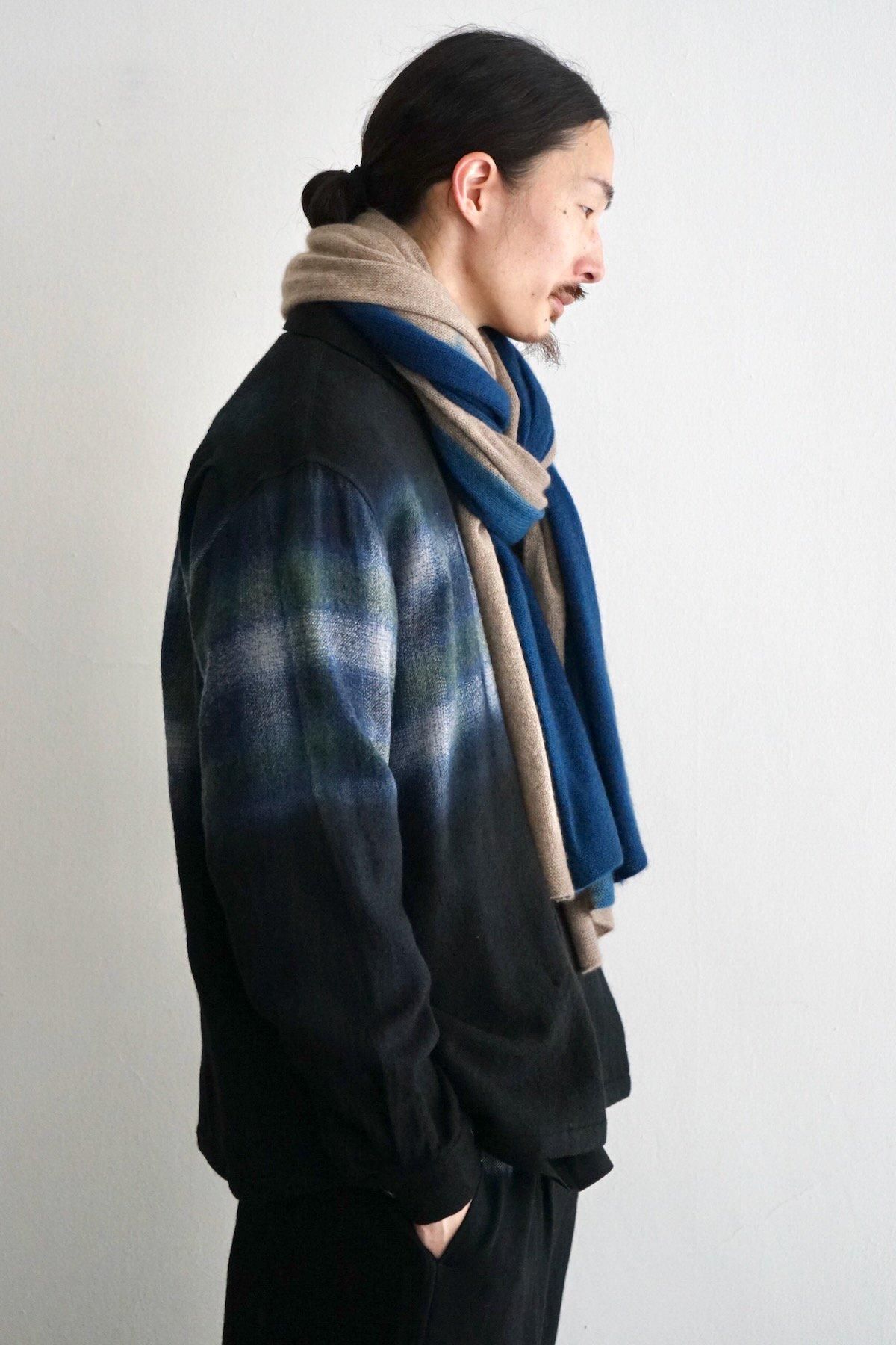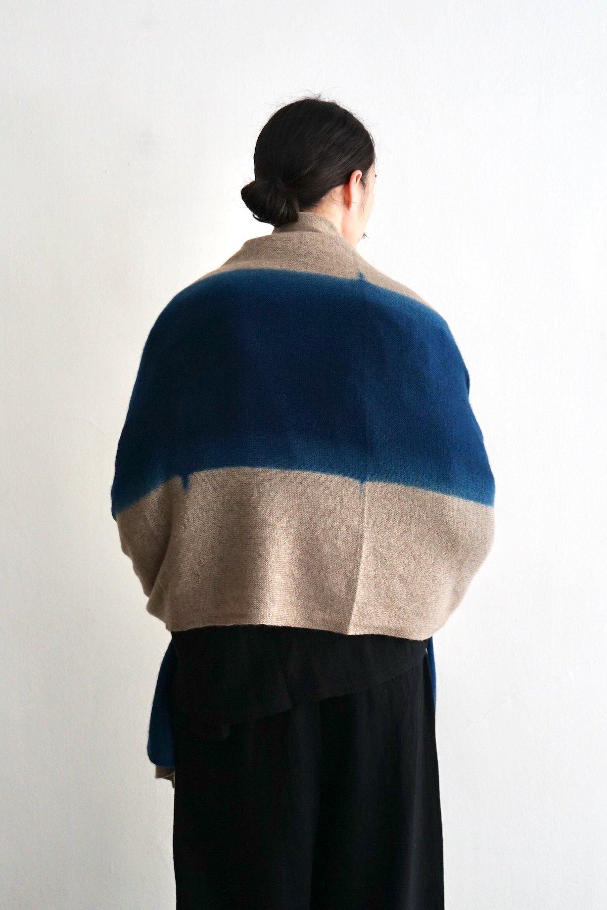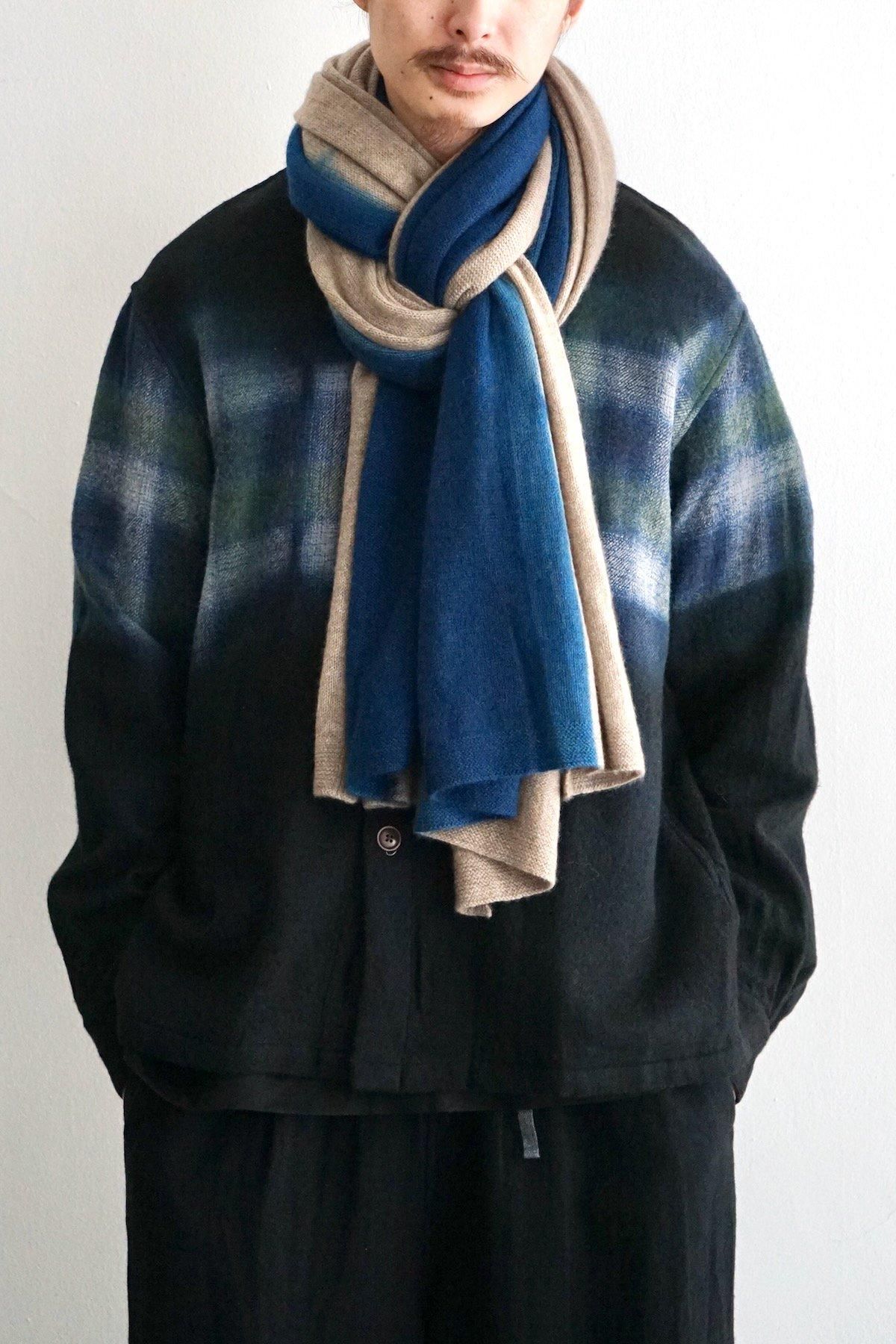 suzusan / Cashmere Knit Shawl / Dark Blue x Light Coffee