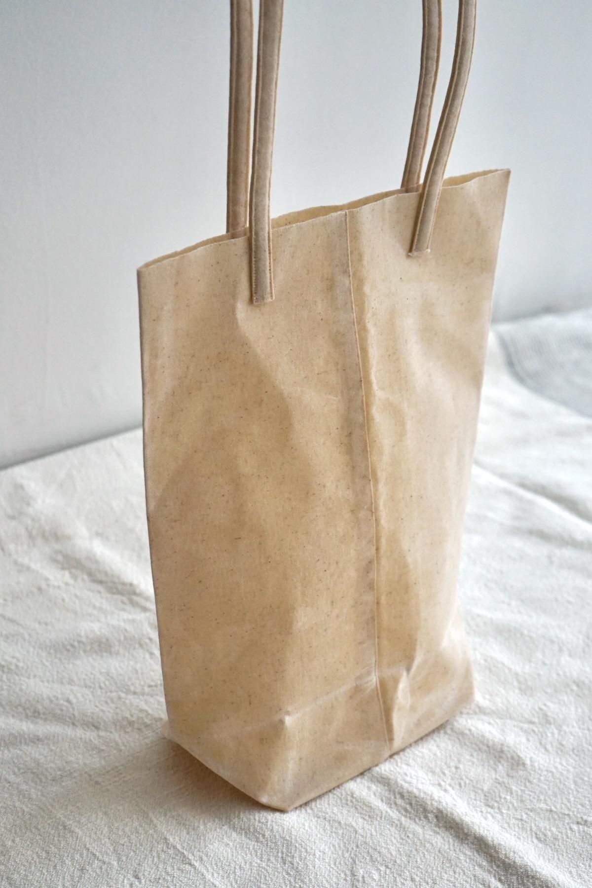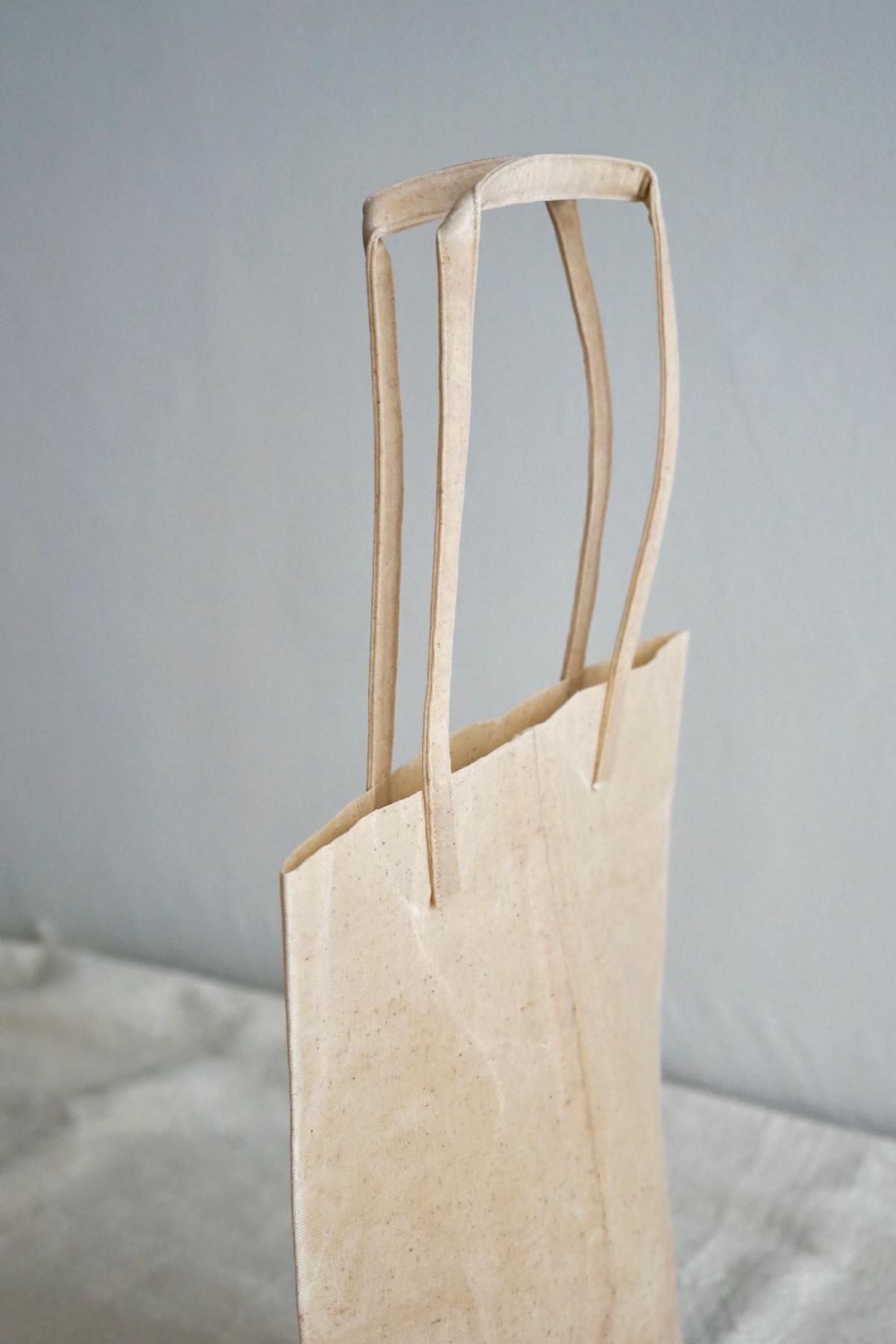 クラフト紙でできた紙袋がインスピレーション源となっており、その質感と風合いを、永く愛用できる素材で再現しようと生まれた作品で