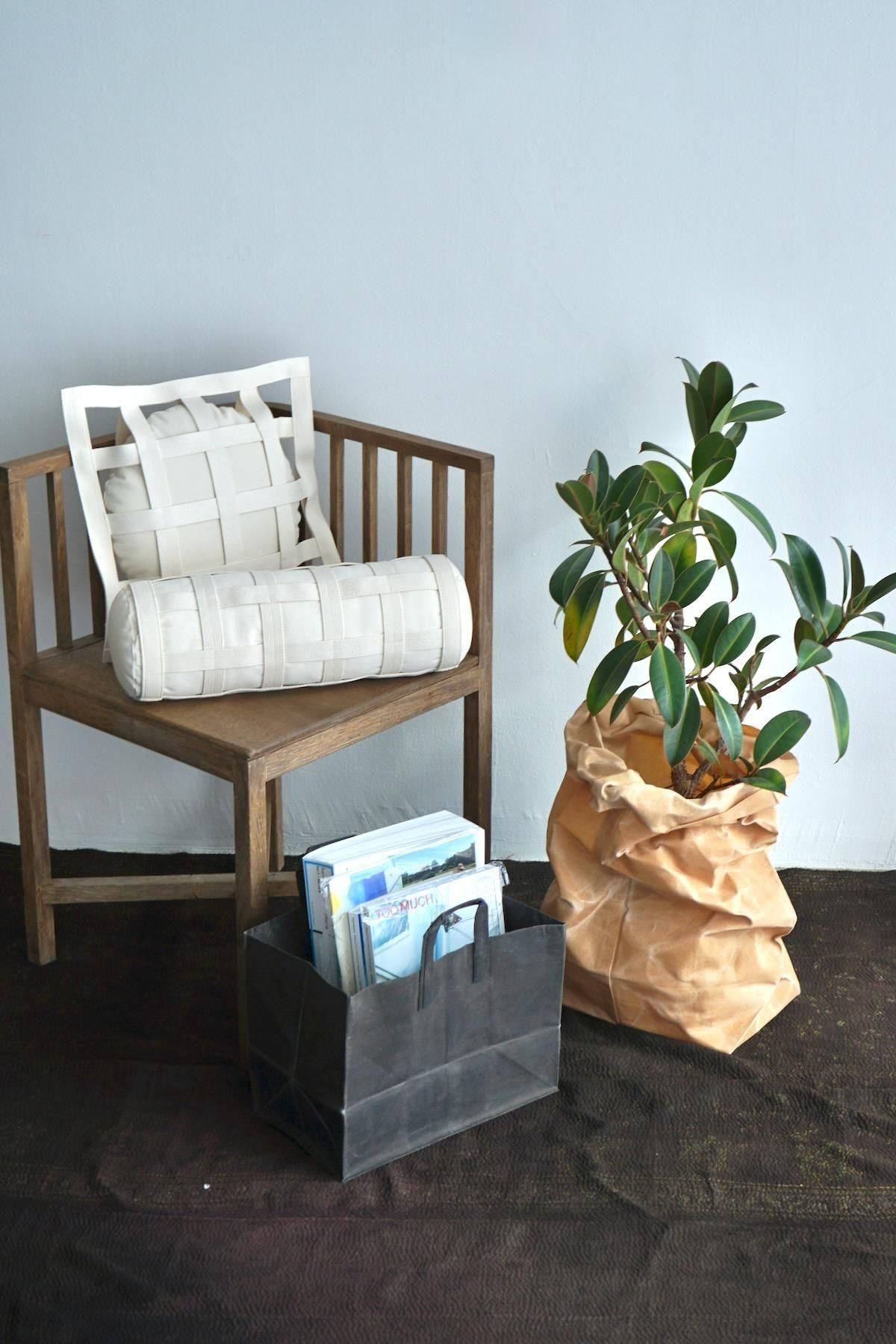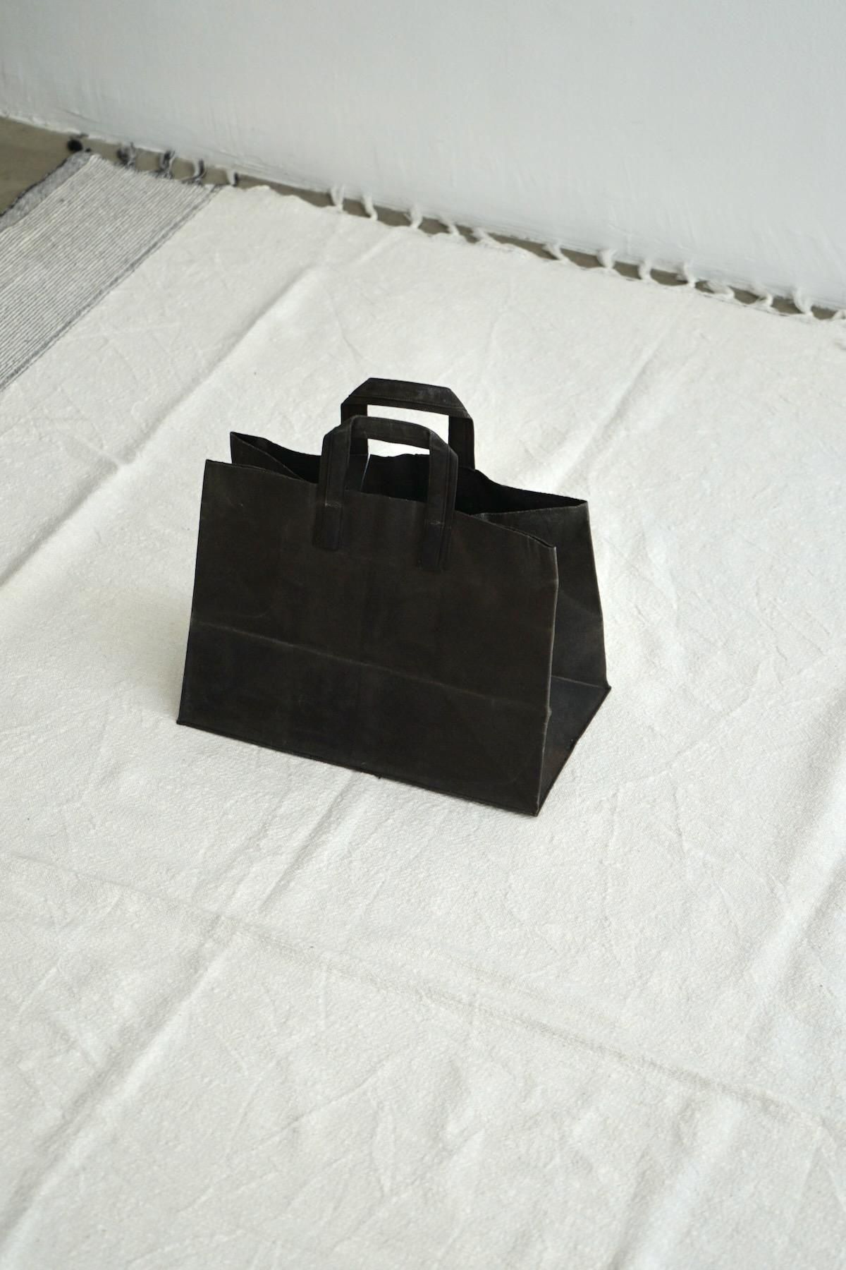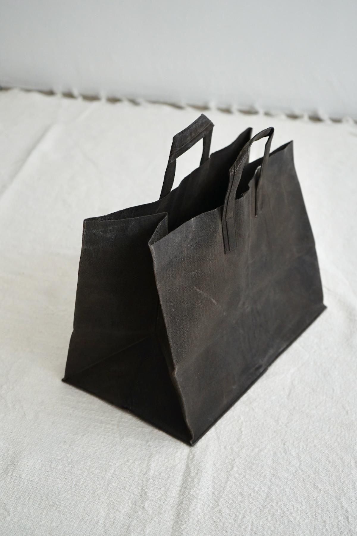 クラフト紙でできた紙袋がインスピレーション源となっており、その質感と風合いを、永く愛用できる素材で再現しようと生まれた作品で