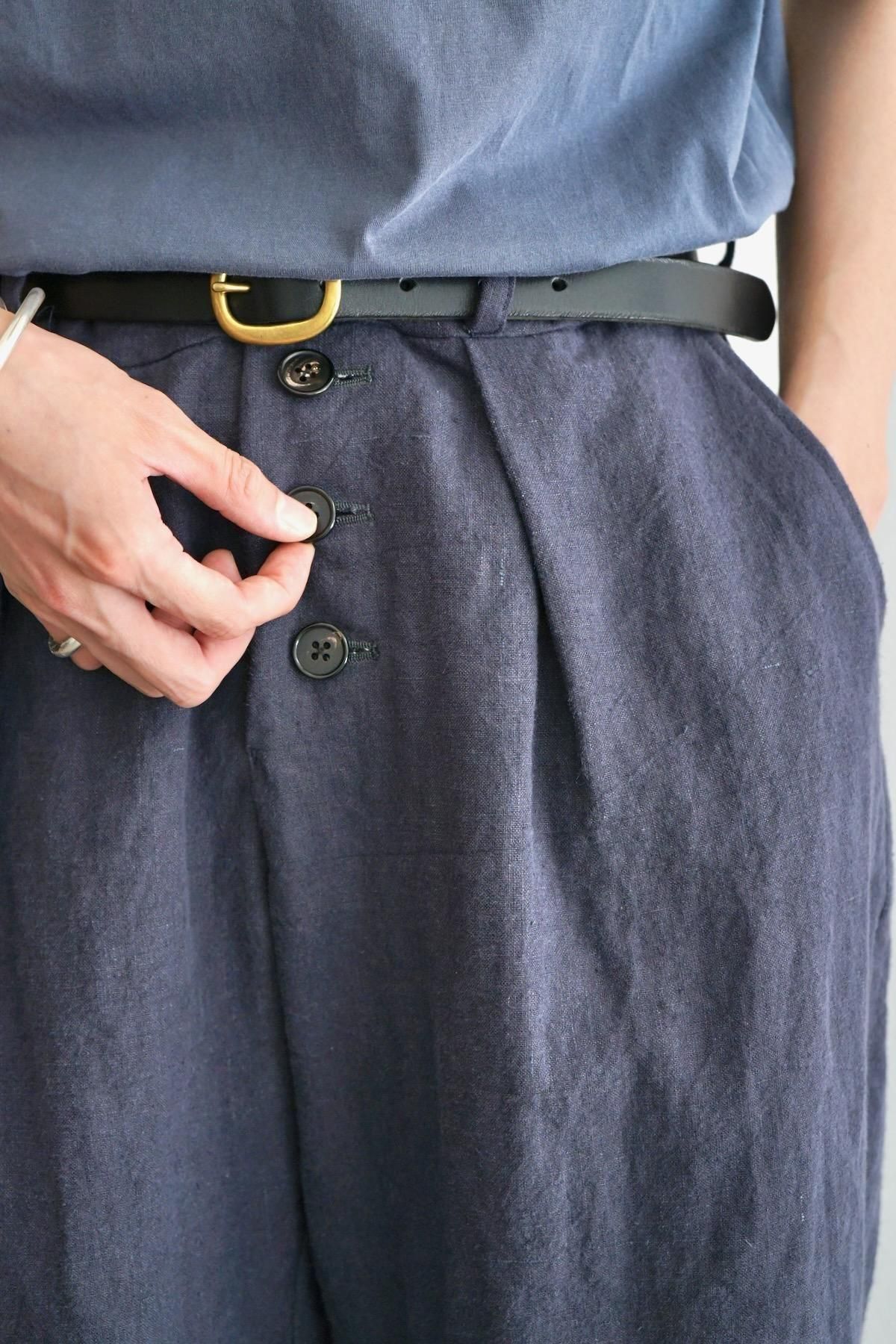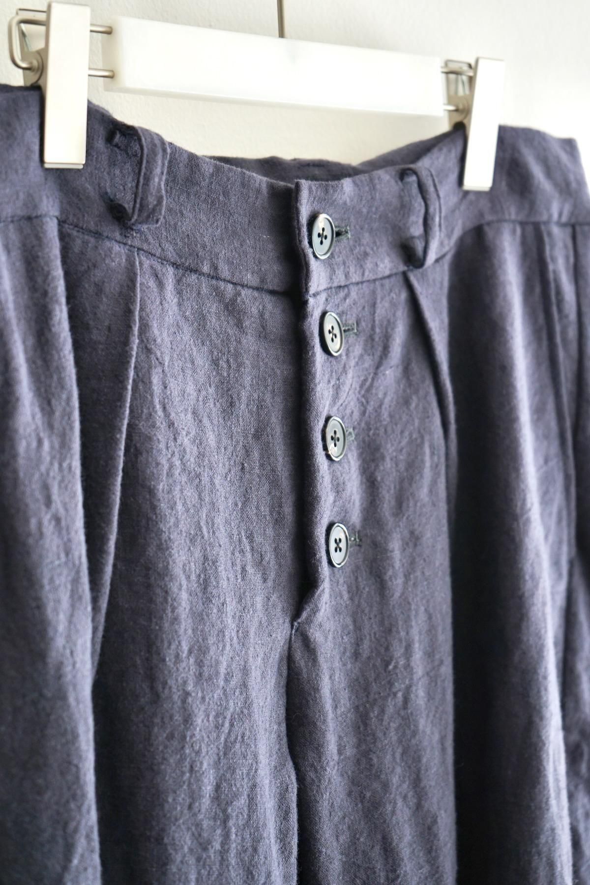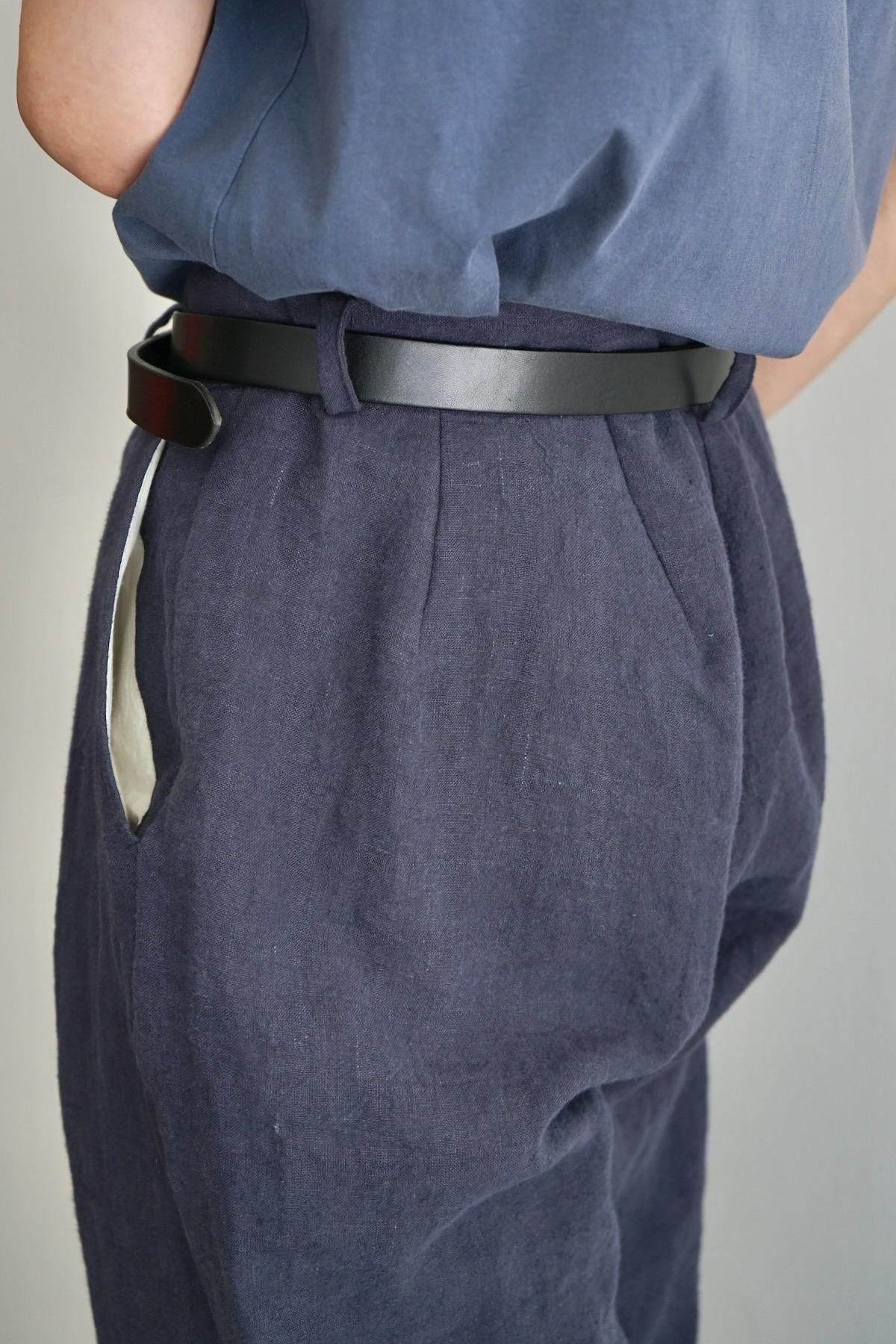 使用している生地はすべて日本国内で織布・加工されており、ウールは一宮市周辺の尾州産、リネンは江戸時代から続く「紅染(もみぞめ)」と呼ばれる伝統技法を用いて、東京下町の染色工場で染め上げています。
