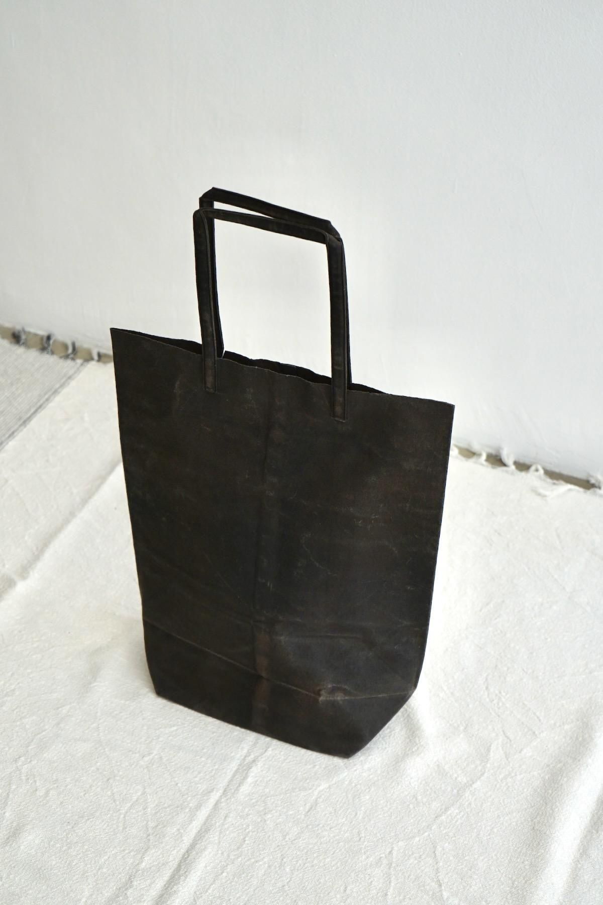 クラフト紙でできた紙袋がインスピレーション源となっており、その質感と風合いを、永く愛用できる素材で再現しようと生まれた作品で
