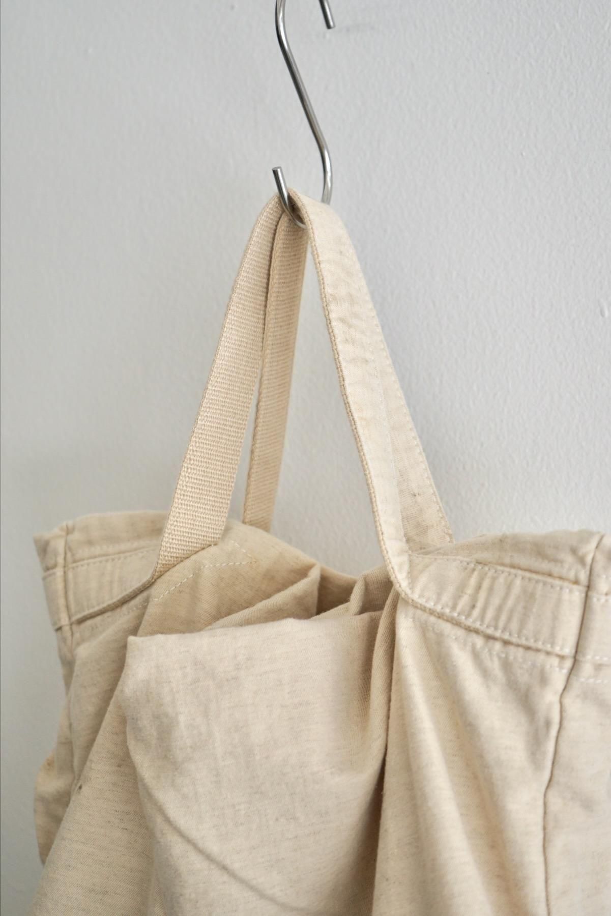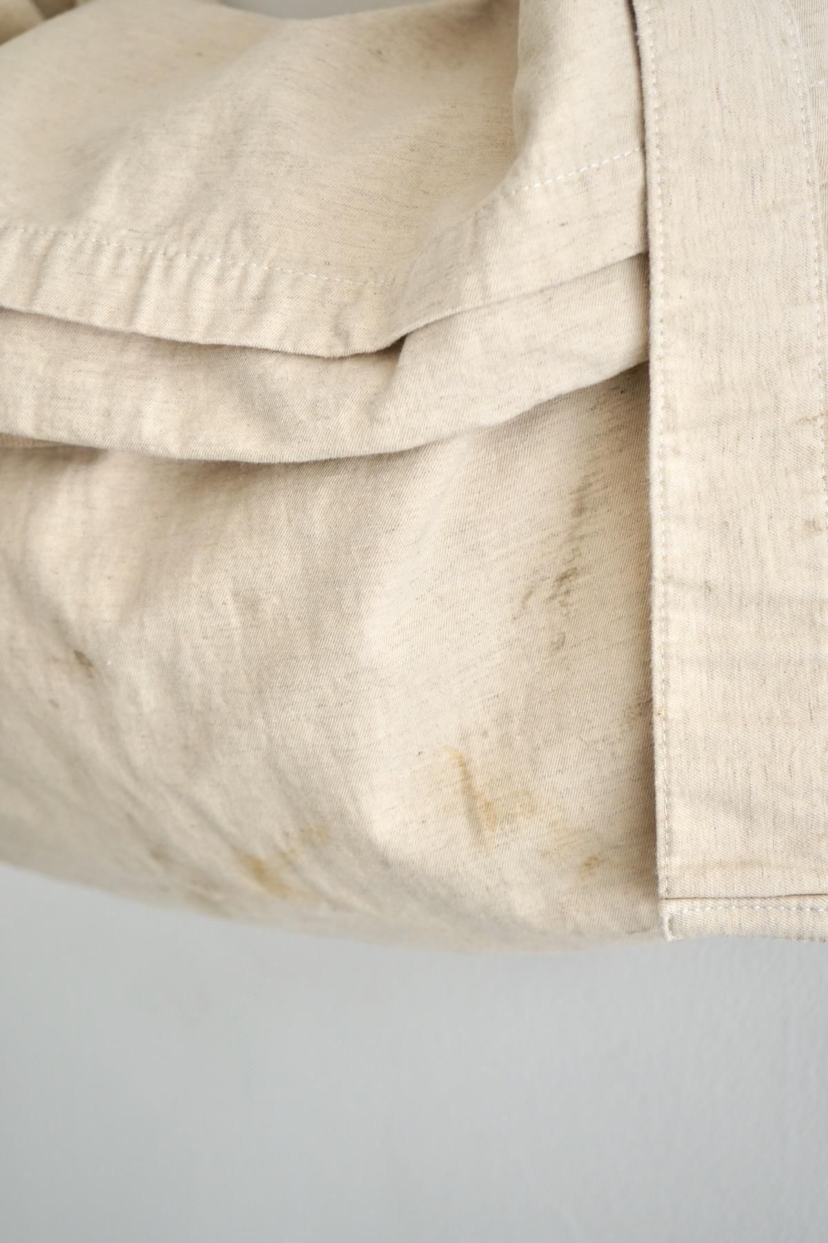 定番のコットンヘンプのTransform Bagをベースに福岡を拠点とするアパレルブランドA.D.A.N®に依頼し、岡山・児島の職人による汚し加工を施しました。タンニン染めによる全体的にくすんだ色味と大袈裟ではない自然な汚しは、使い込むことで更なる変化を楽しめる逸品です。加工後に製品洗いを行っているため、空気を含んで柔らかく少しやれたような風合いも特徴です。