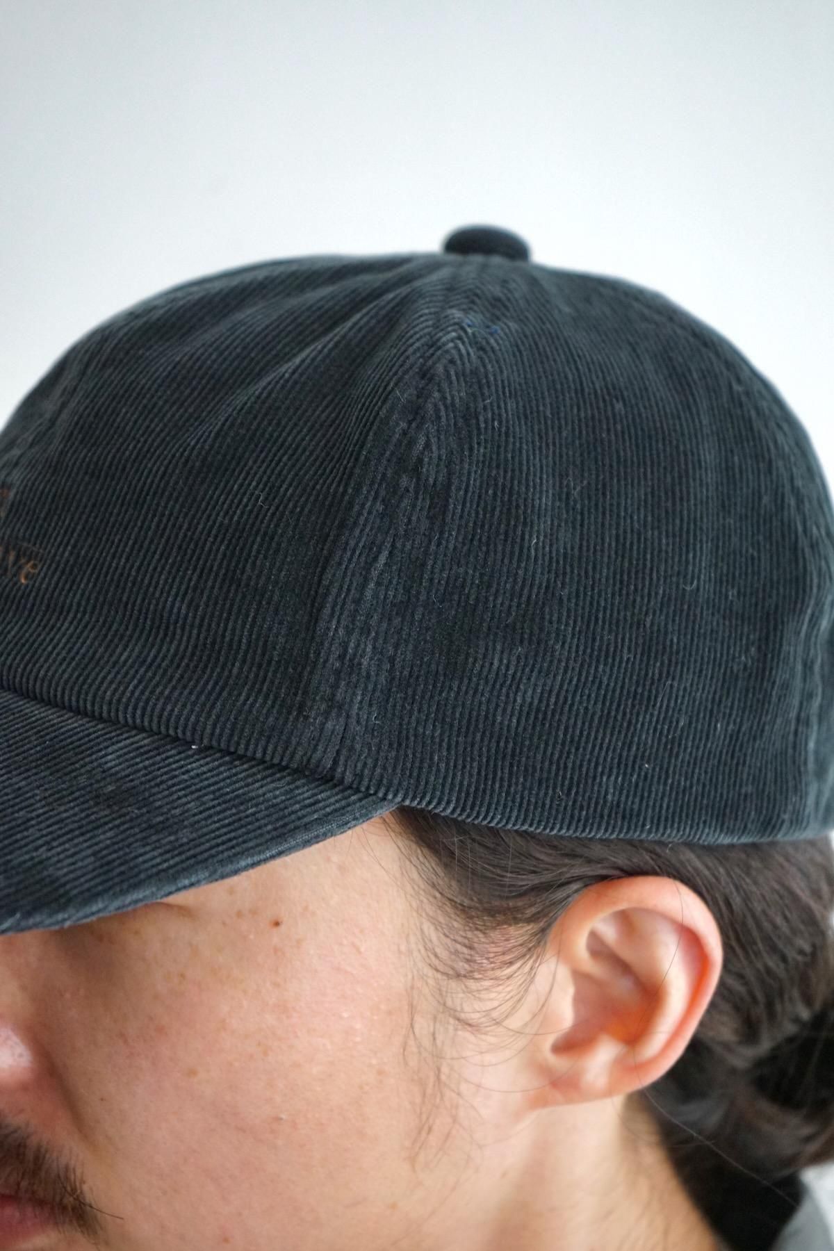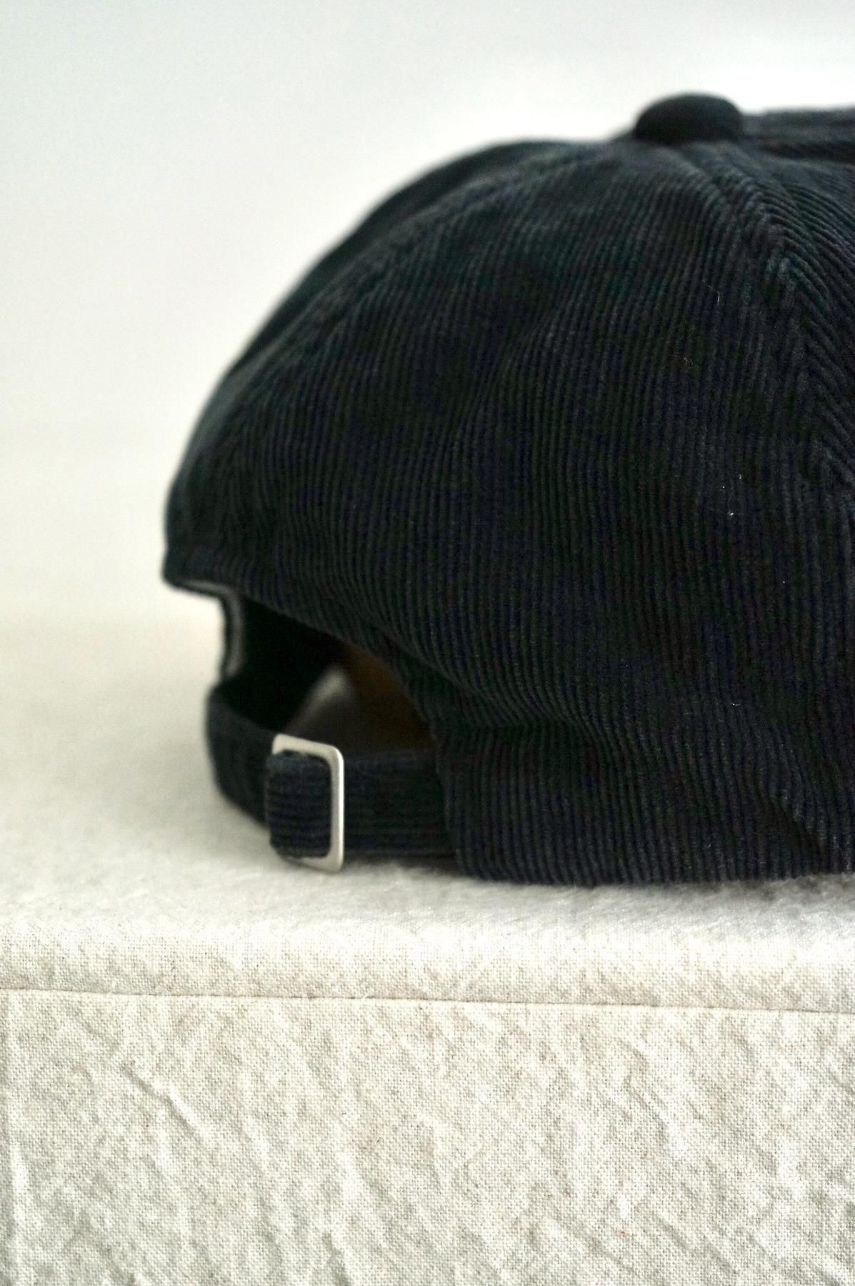 後染め後、天日干しを施し、製品後さらに水洗いする事により、着古されたような味わい深い表情の太畝コーデュロイのベースボールキャップ。