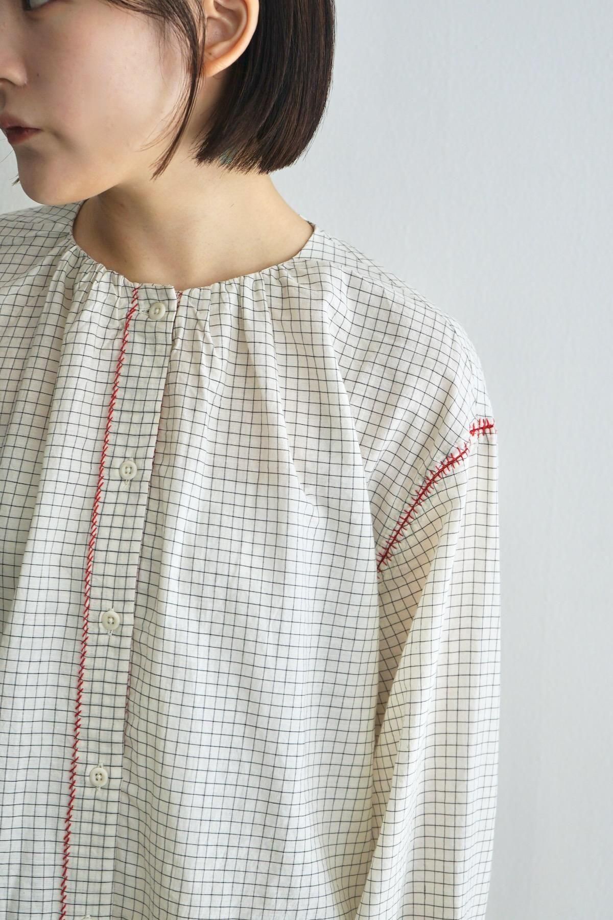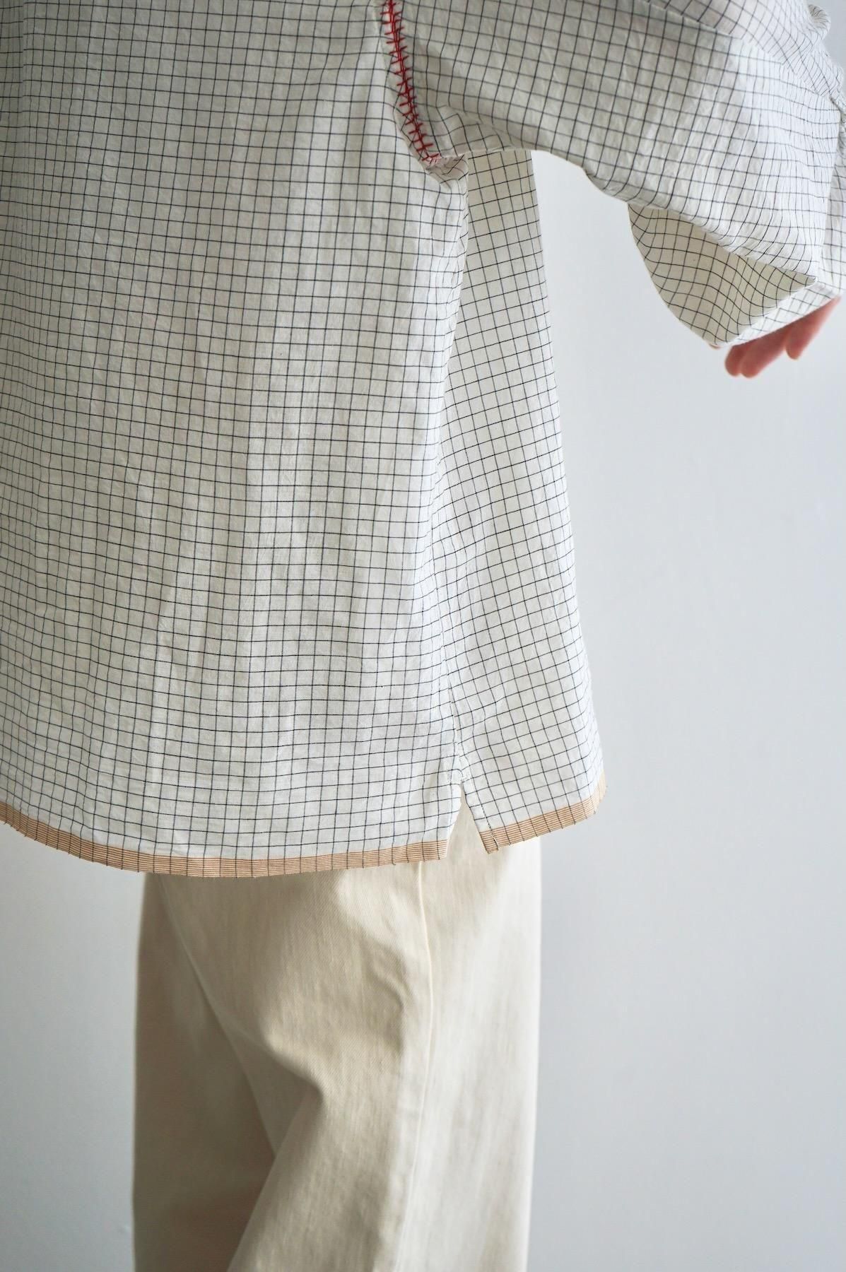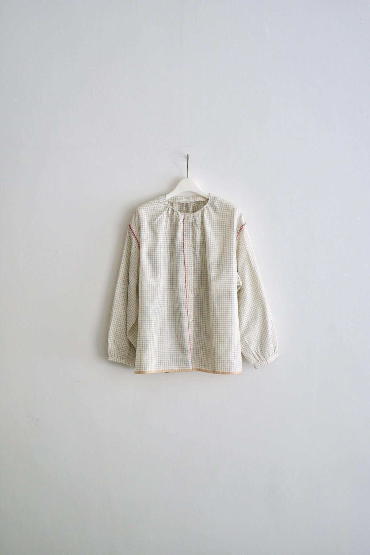 TOAST / Pintuck Graph Check Mul Mul Shirt / Ecru