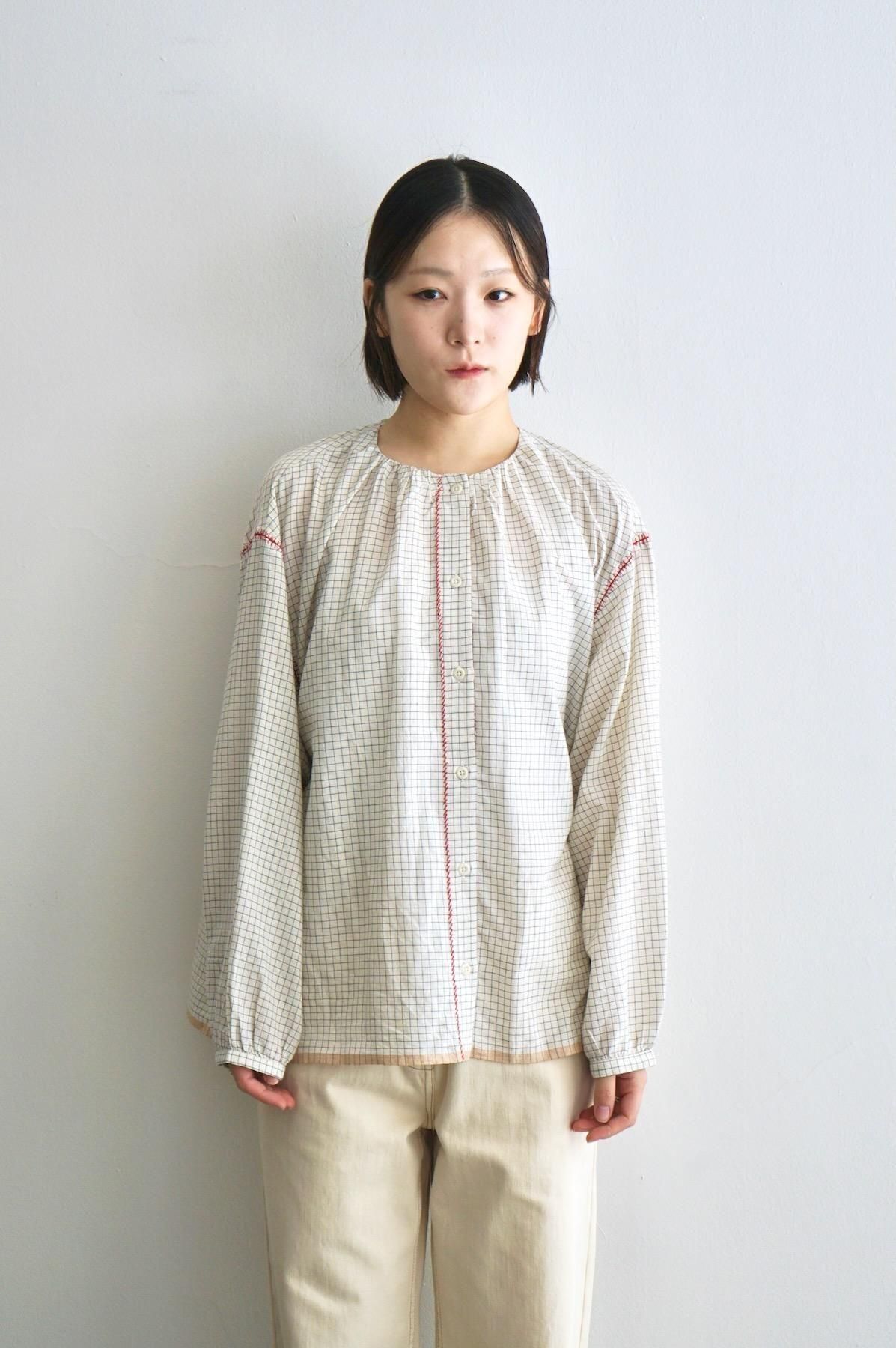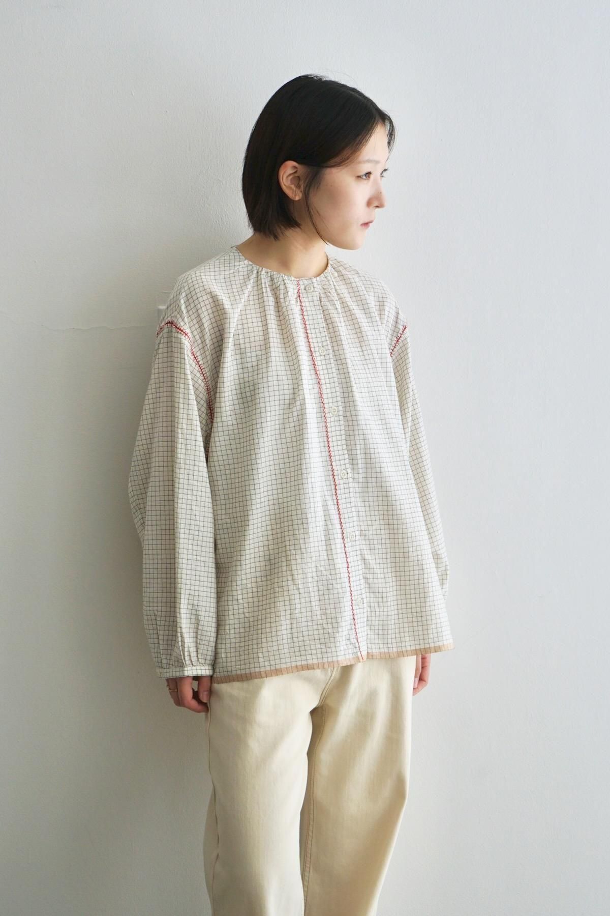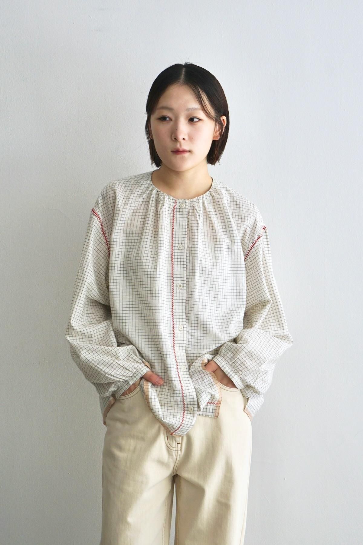 TOAST / Pintuck Graph Check Mul Mul Shirt / Ecru