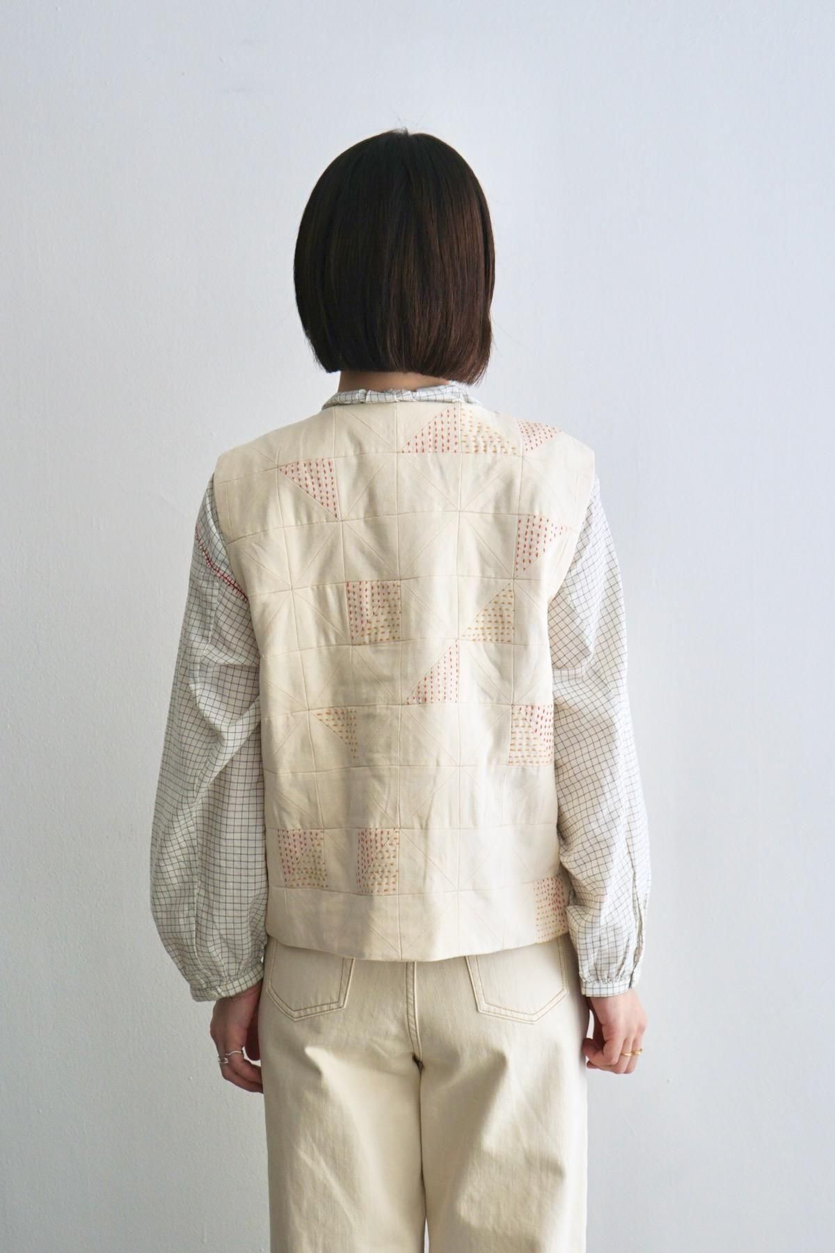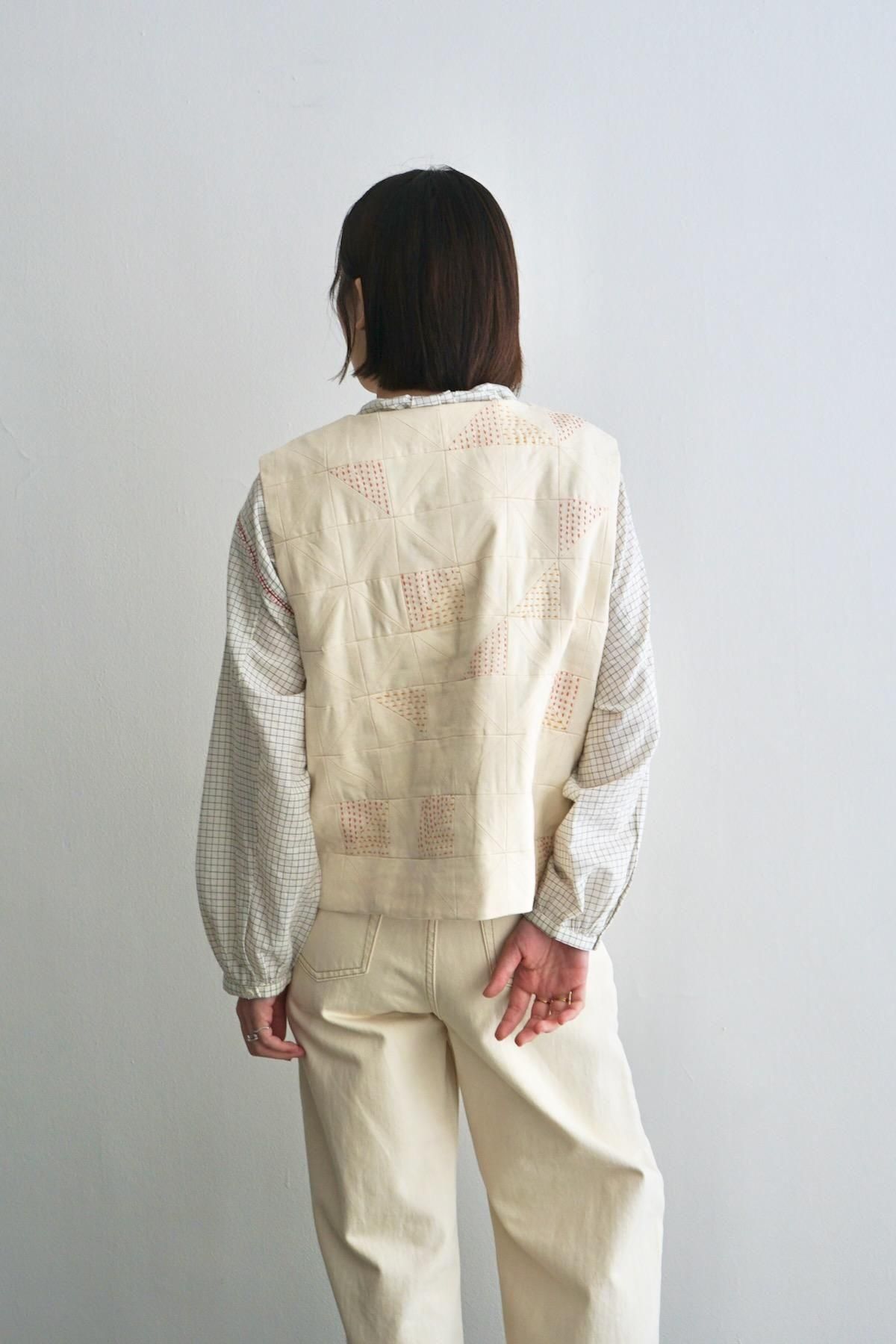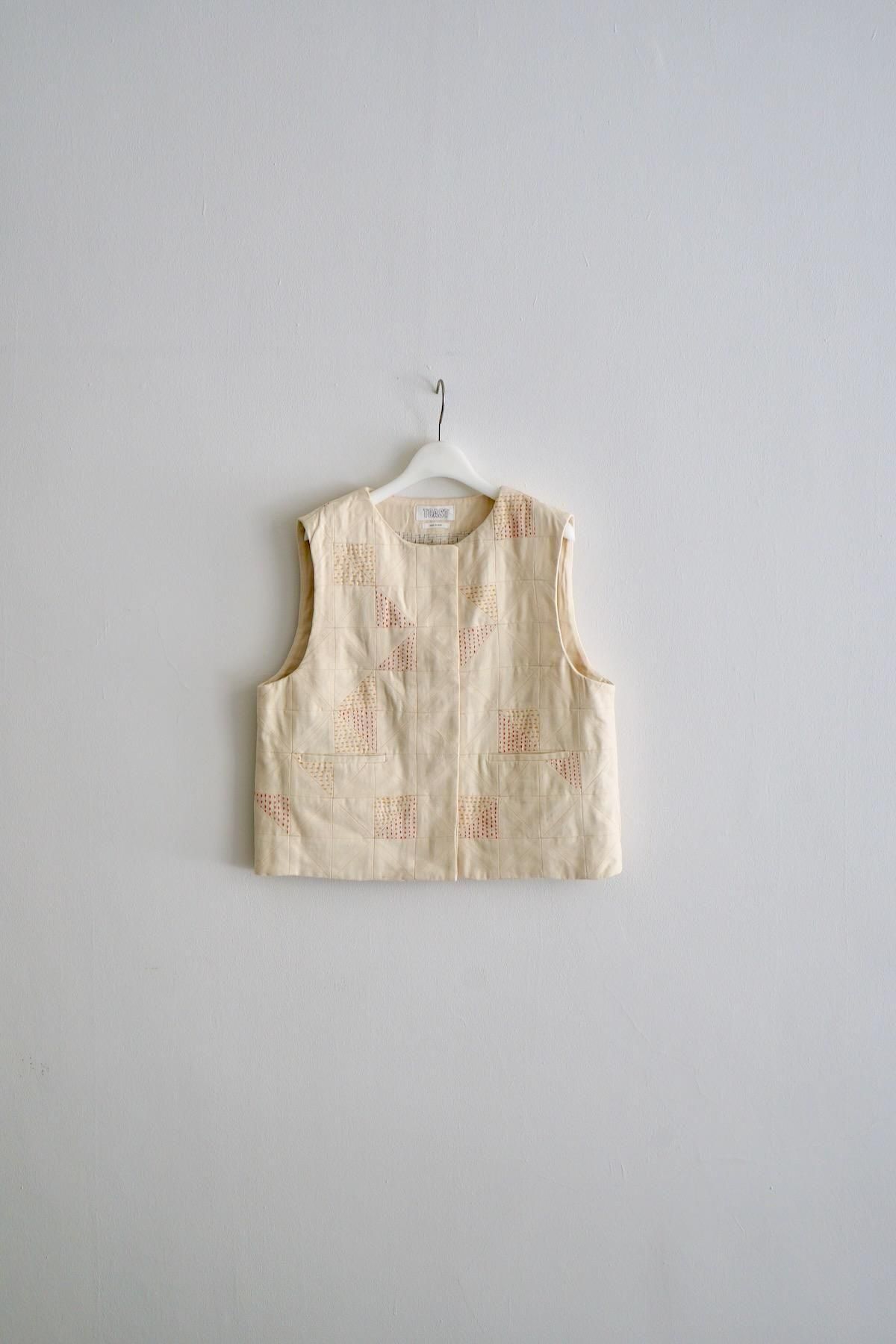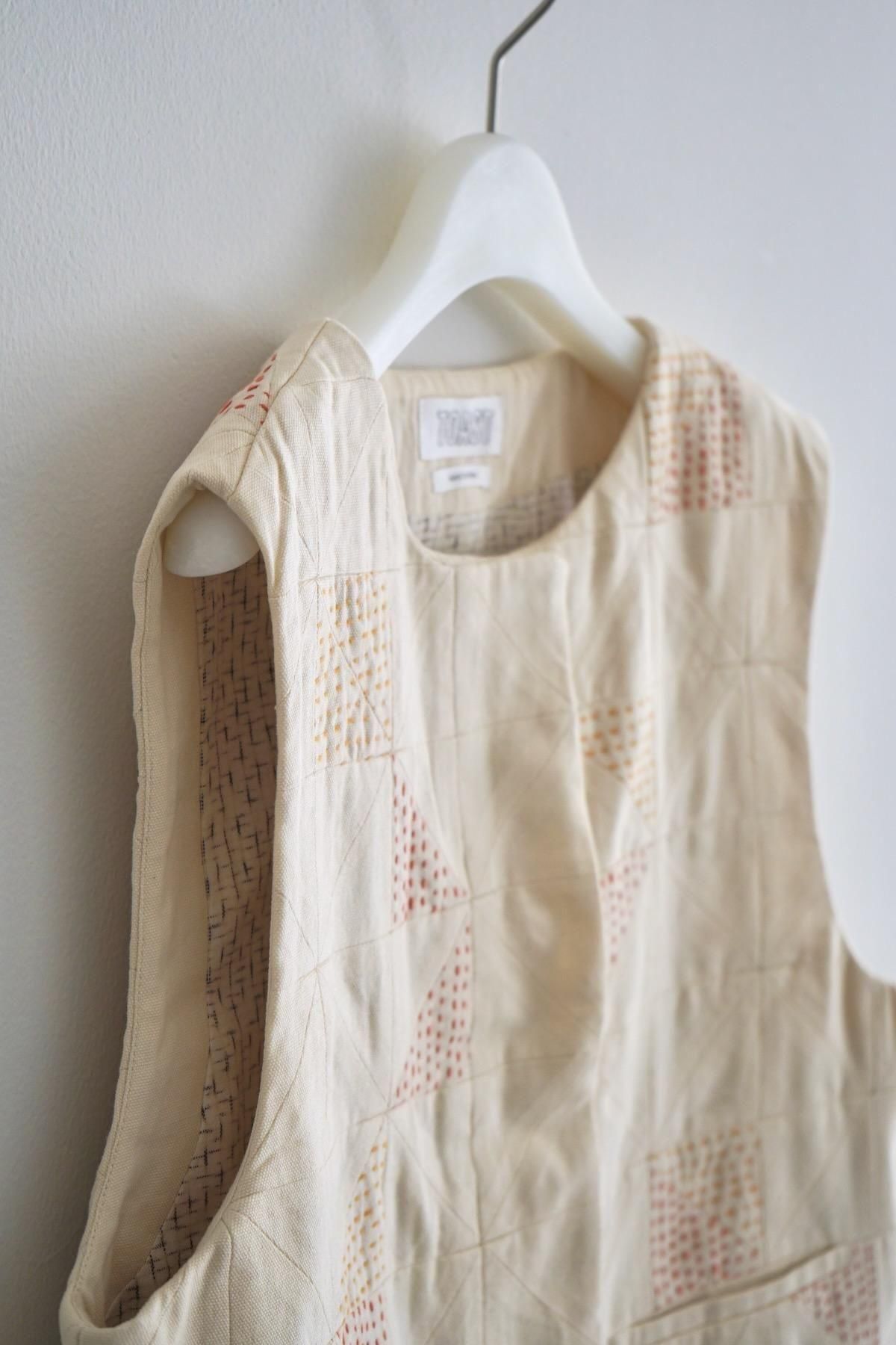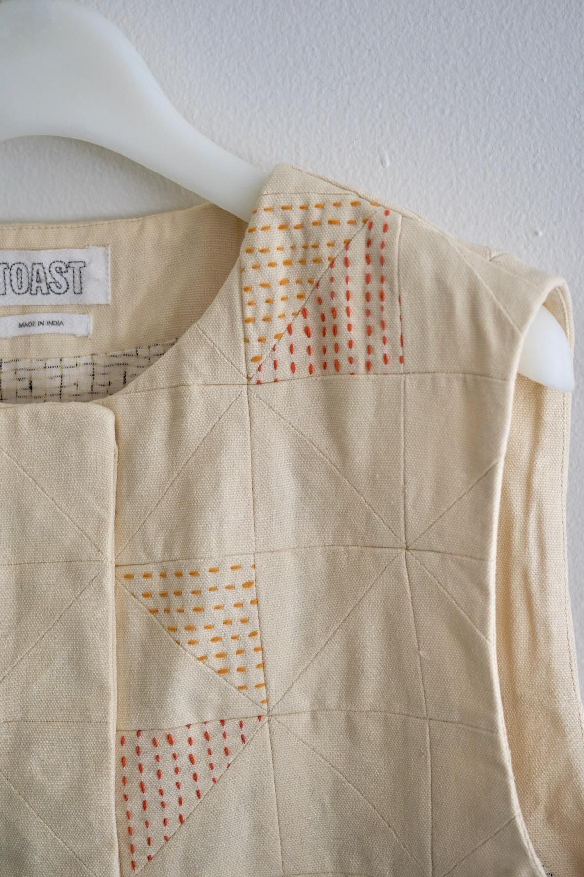 TOAST / Patchwork Kantha Stitch Cotton Waistcoat / Ecru