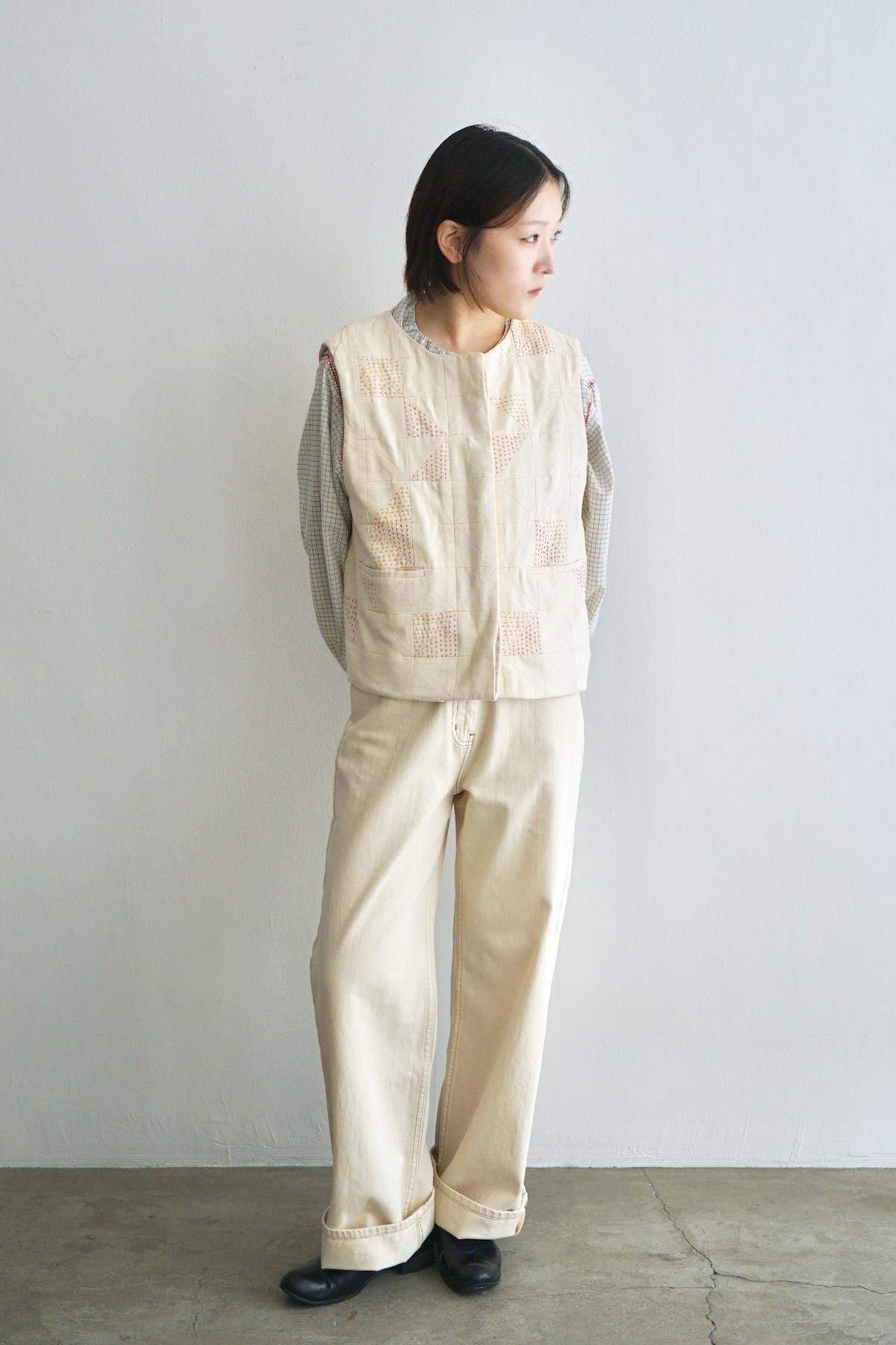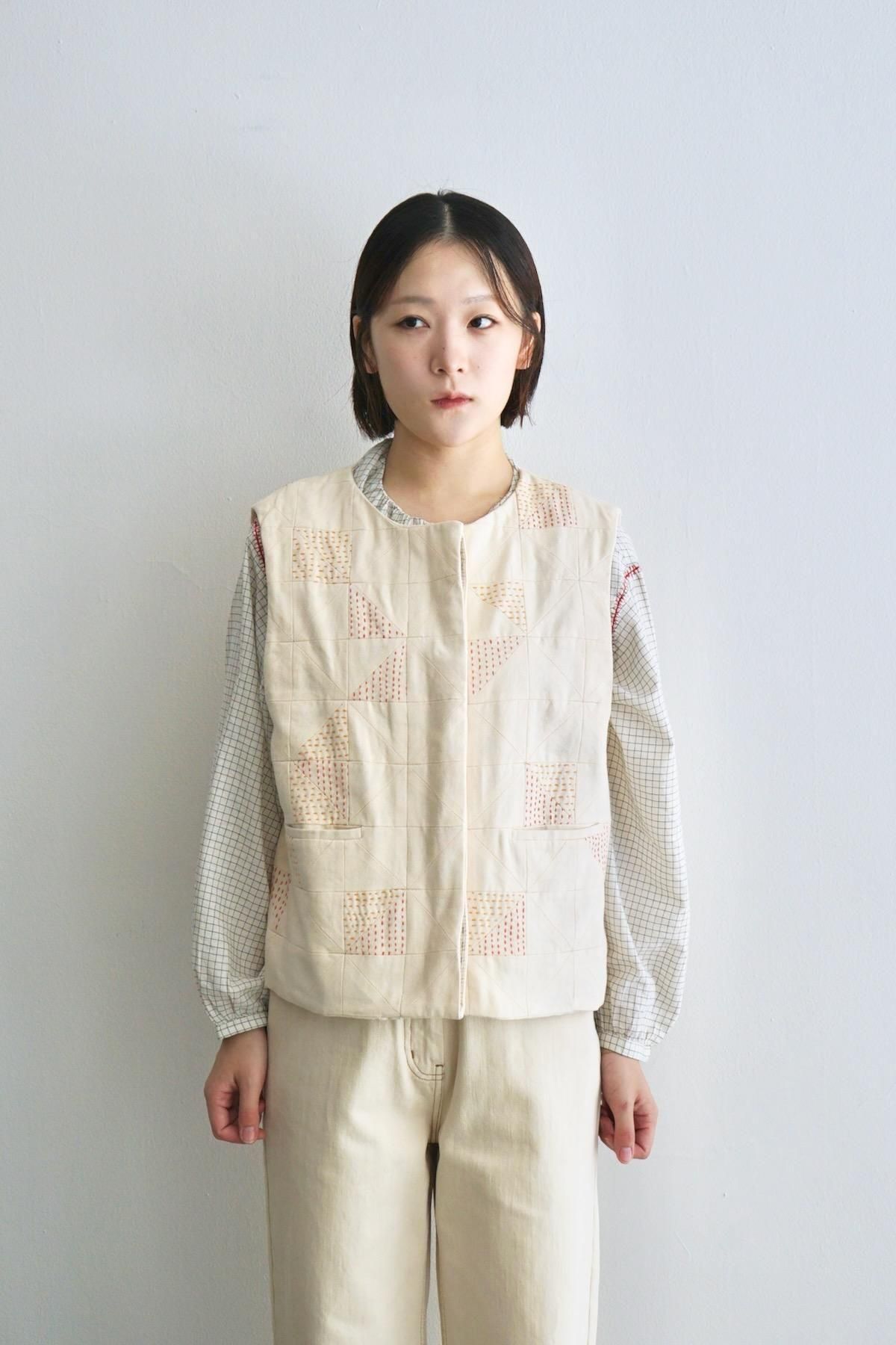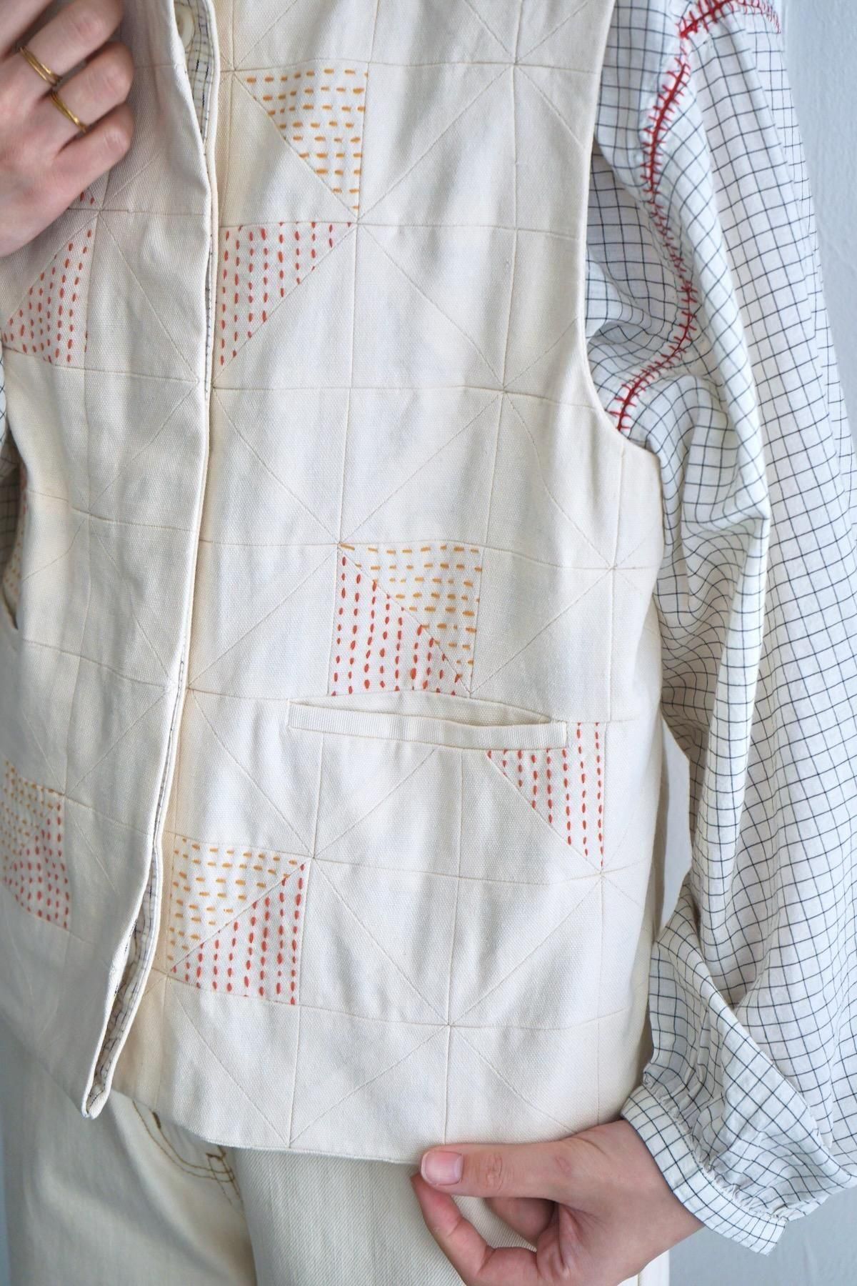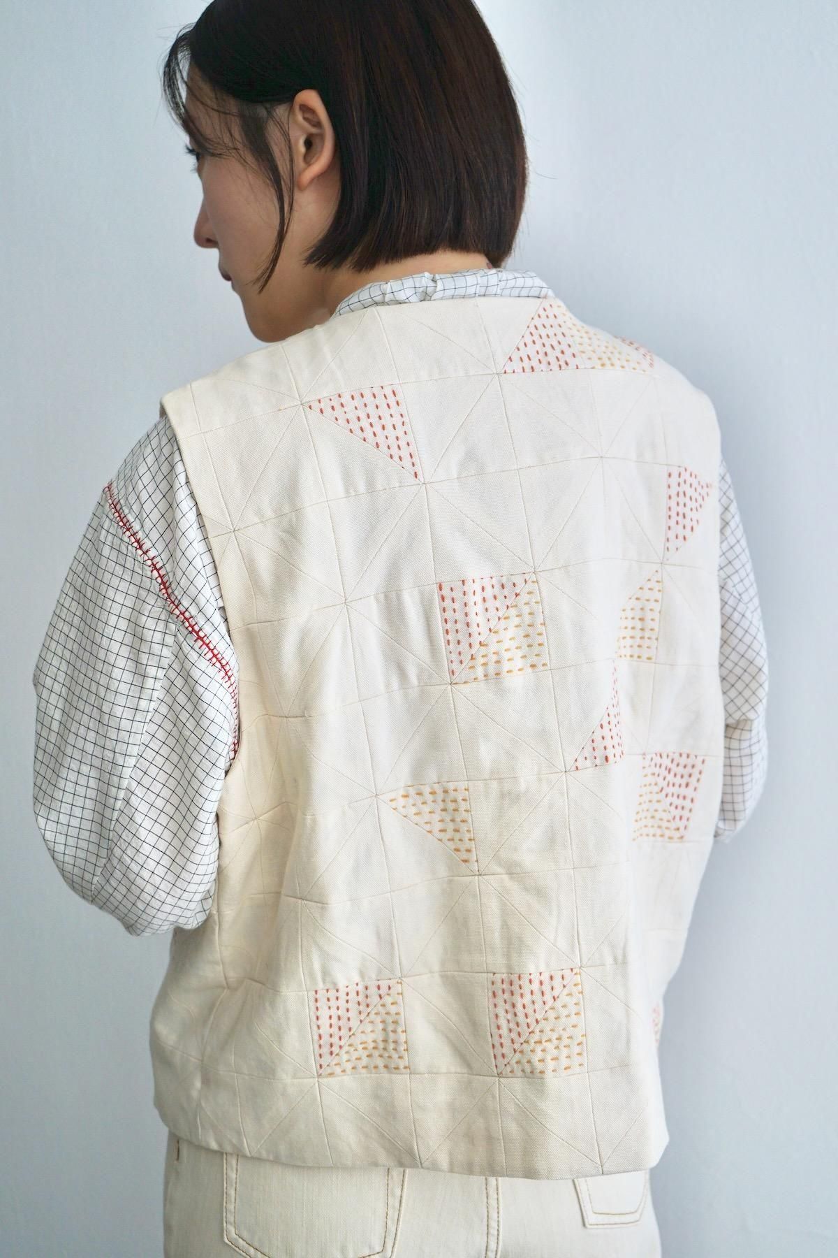 TOAST / Patchwork Kantha Stitch Cotton Waistcoat / Ecru