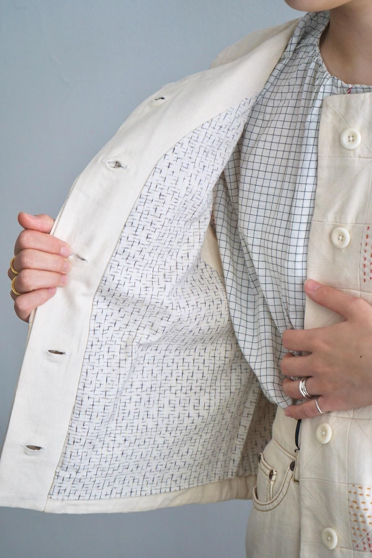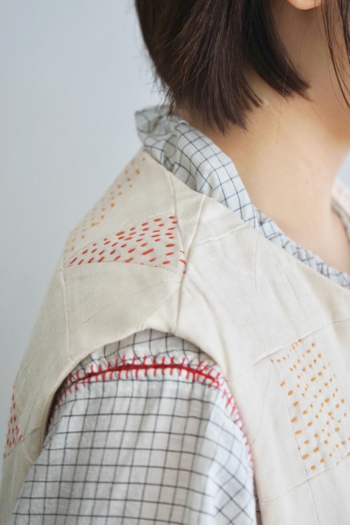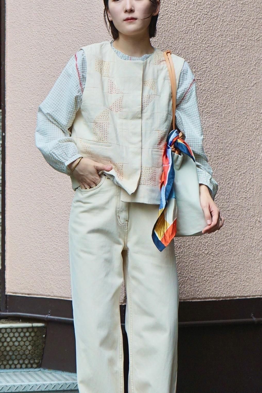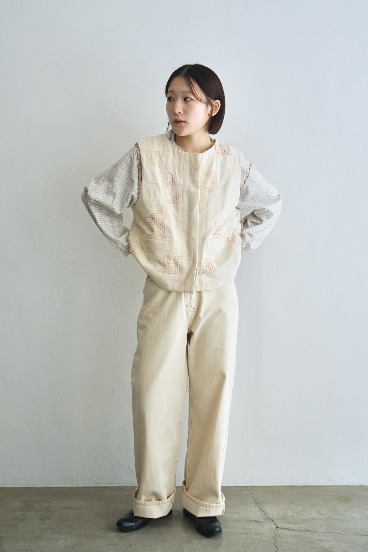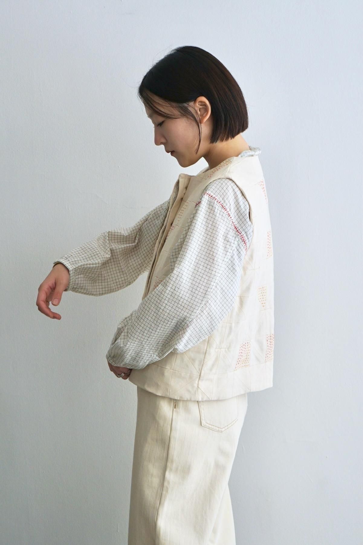 TOAST / Patchwork Kantha Stitch Cotton Waistcoat / Ecru