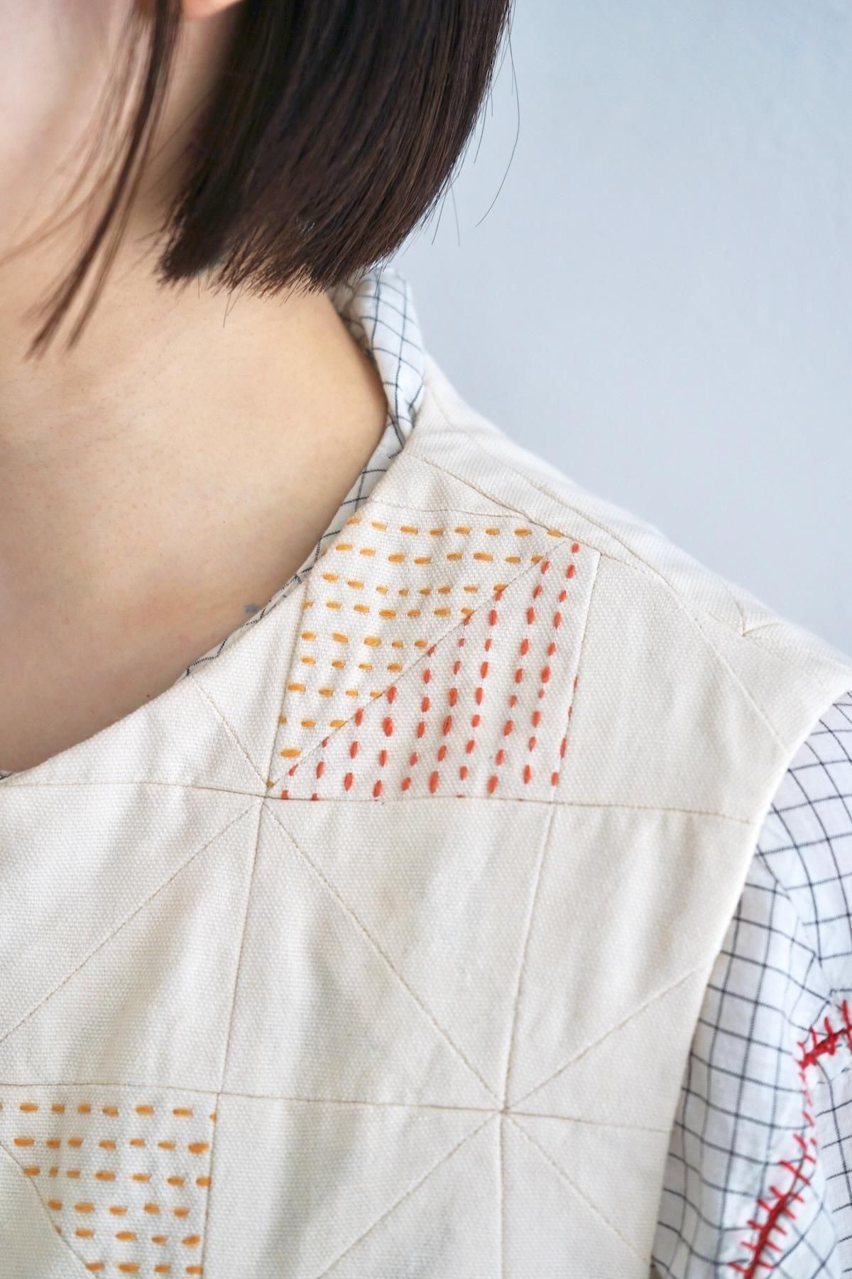 STYLE : Patchwork Kantha Stitch Cotton Waistcoat