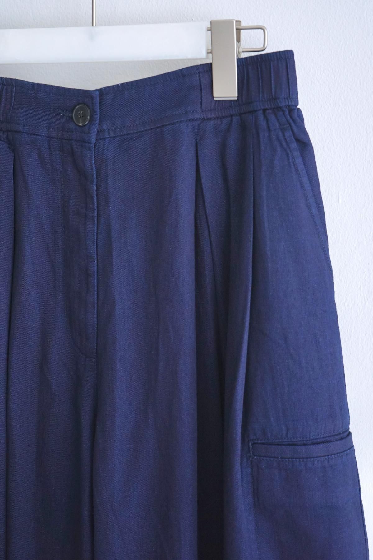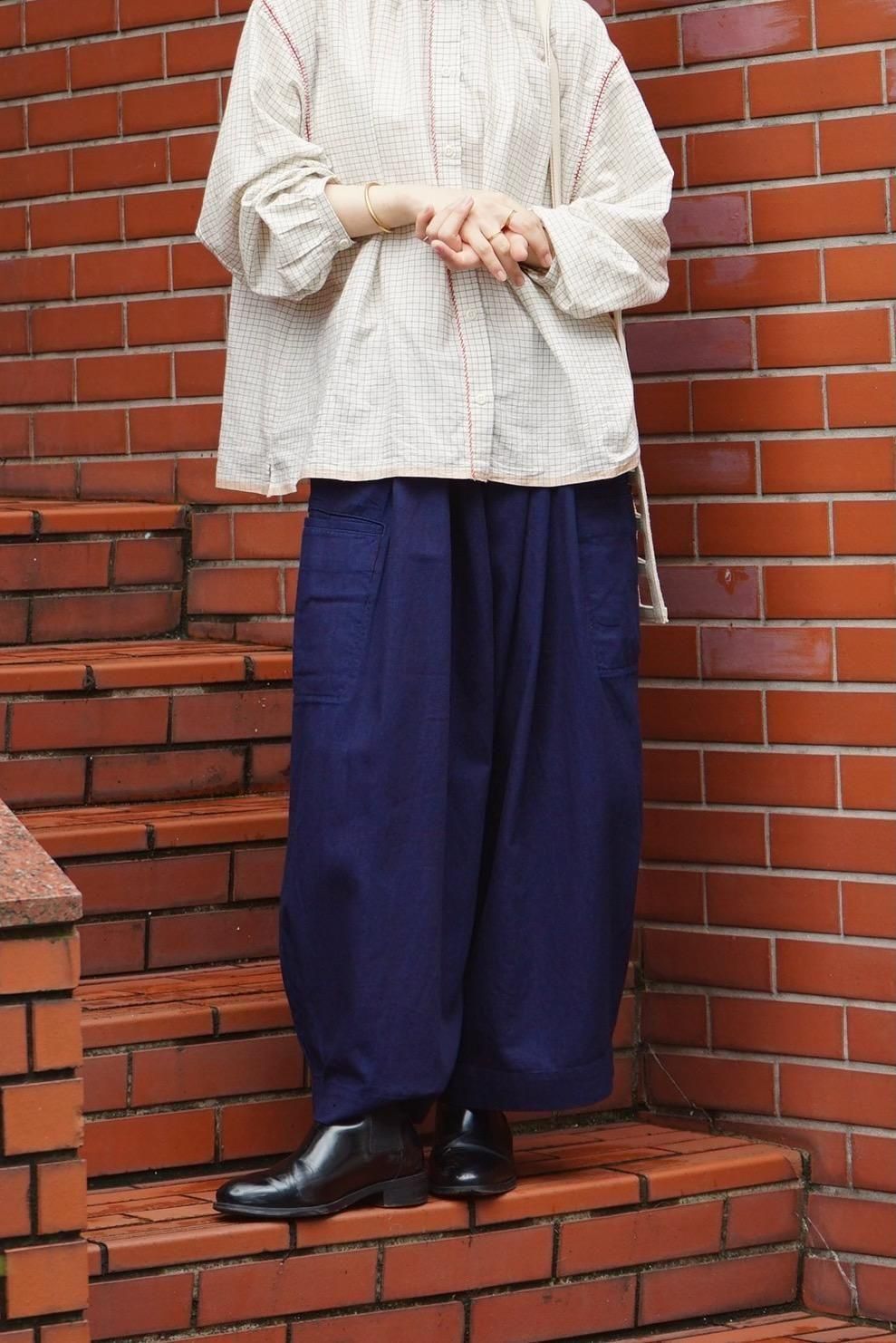 STYLE : Indigo Cotton Twill Wide Leg Trousers