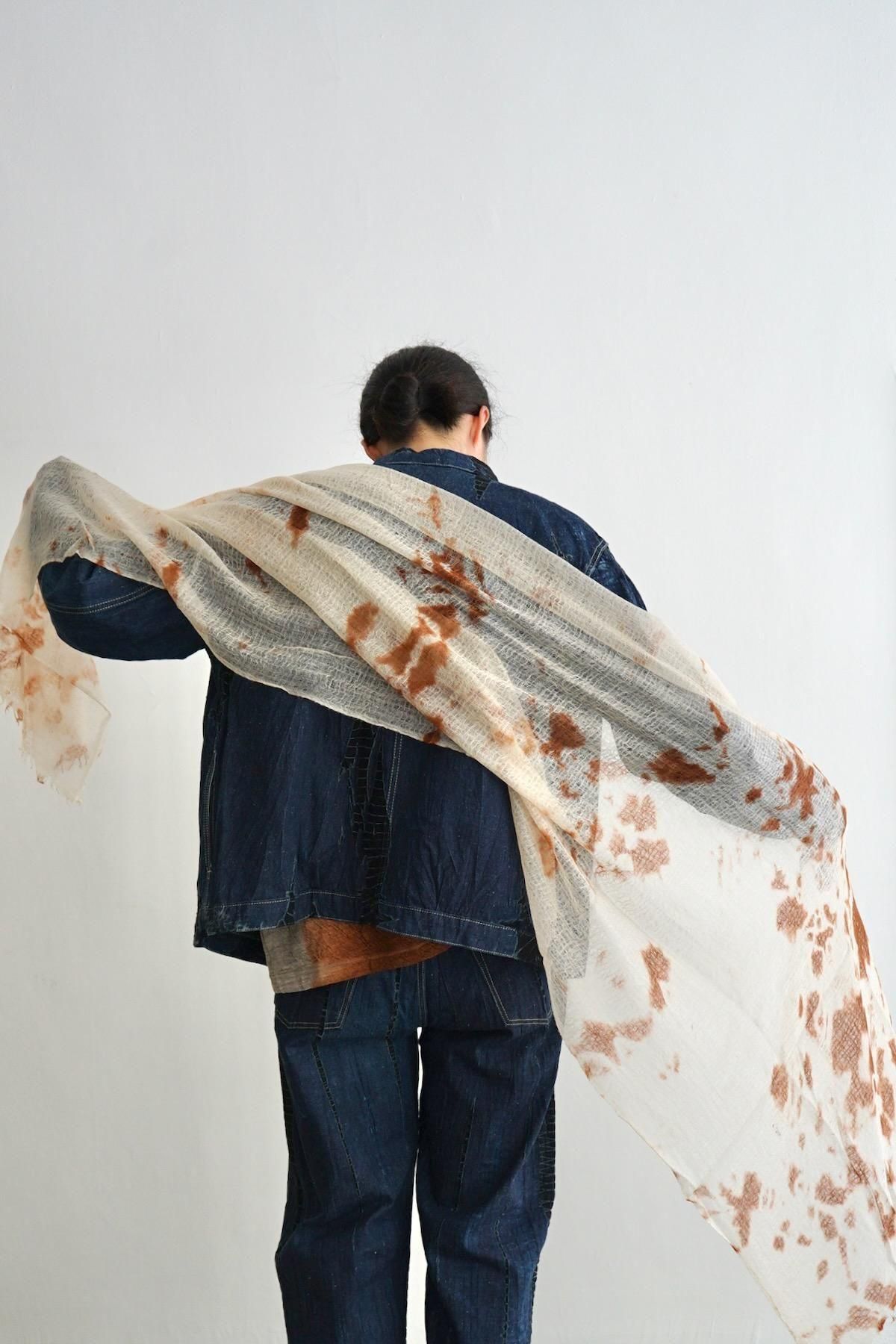 suzusan / Hand Woven Feather Weight Cashmere Shawl / Brown - Sand