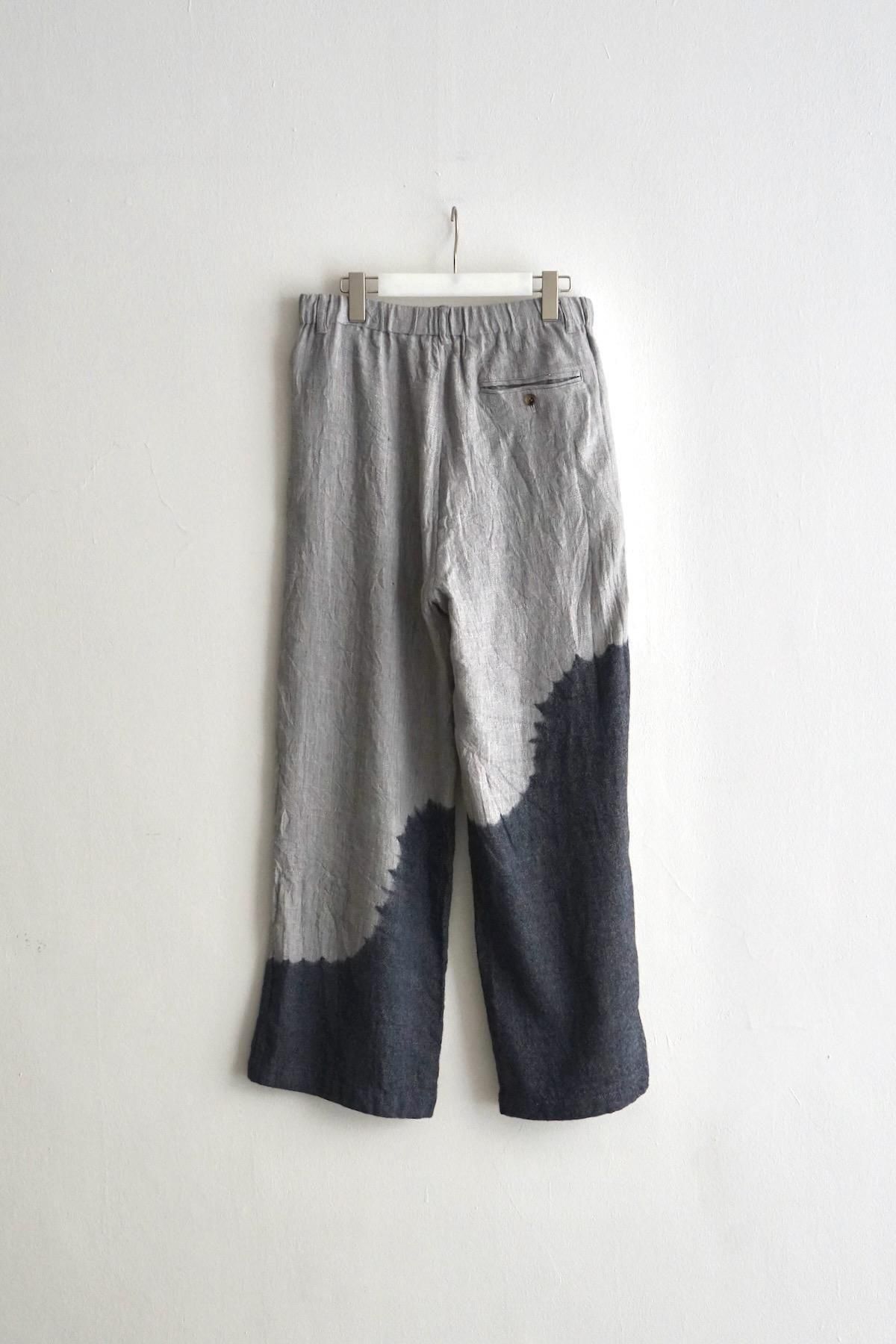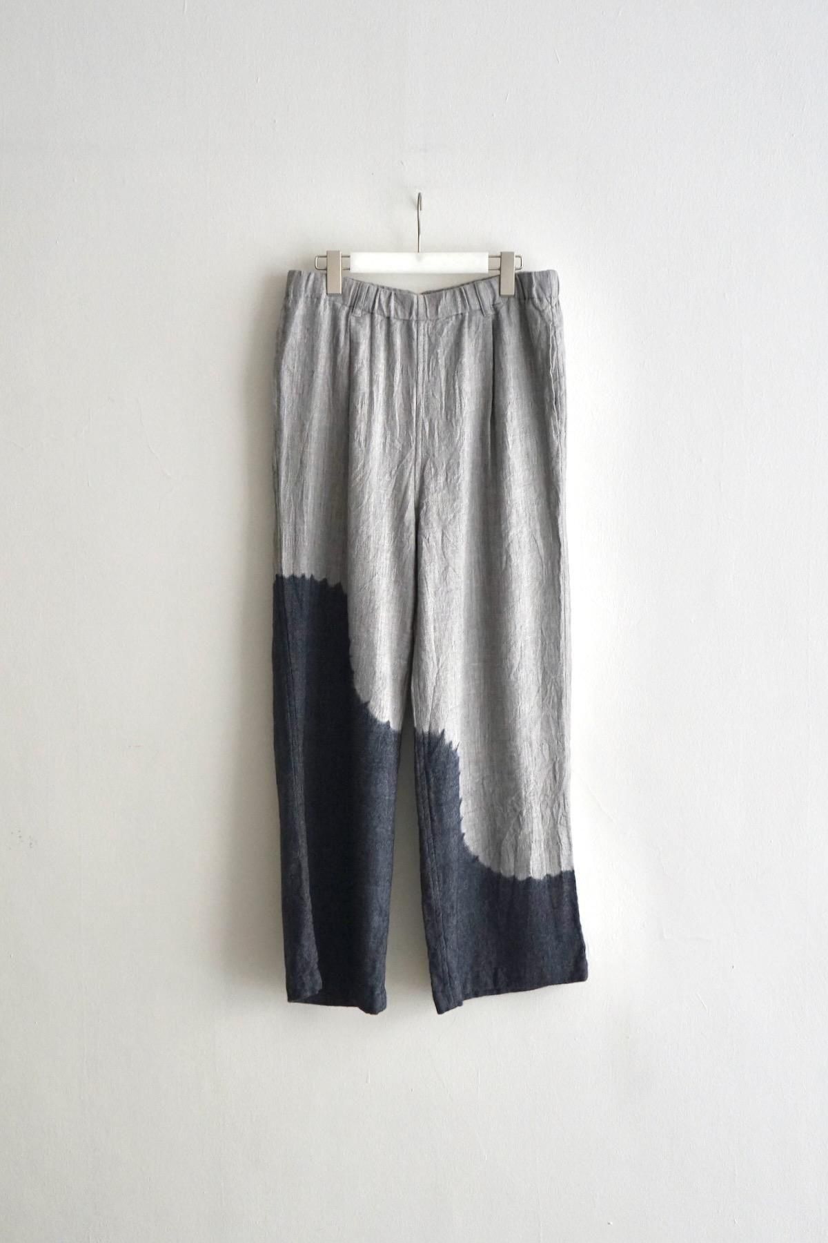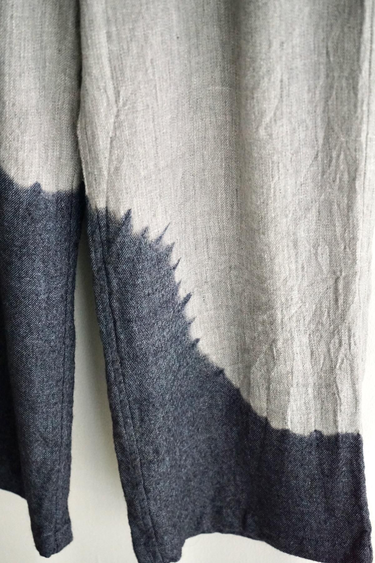 suzusan / Linen Wool Twill Drawstring Wide Pants / Black - Light Grey