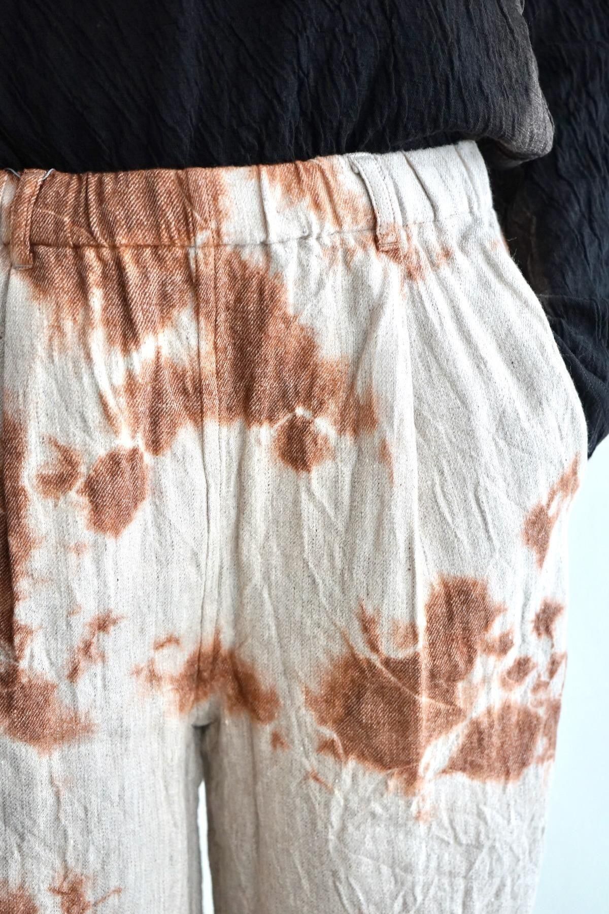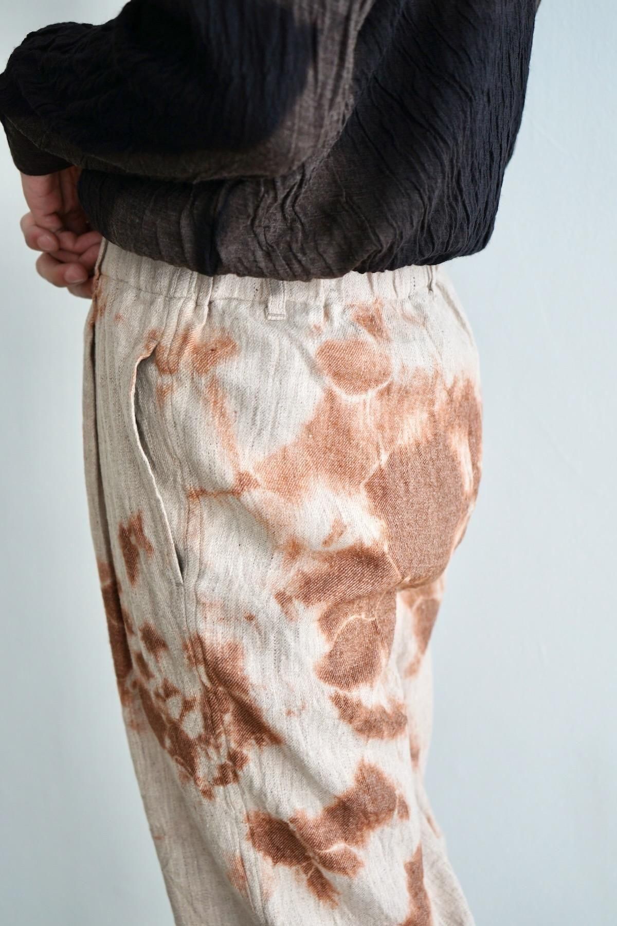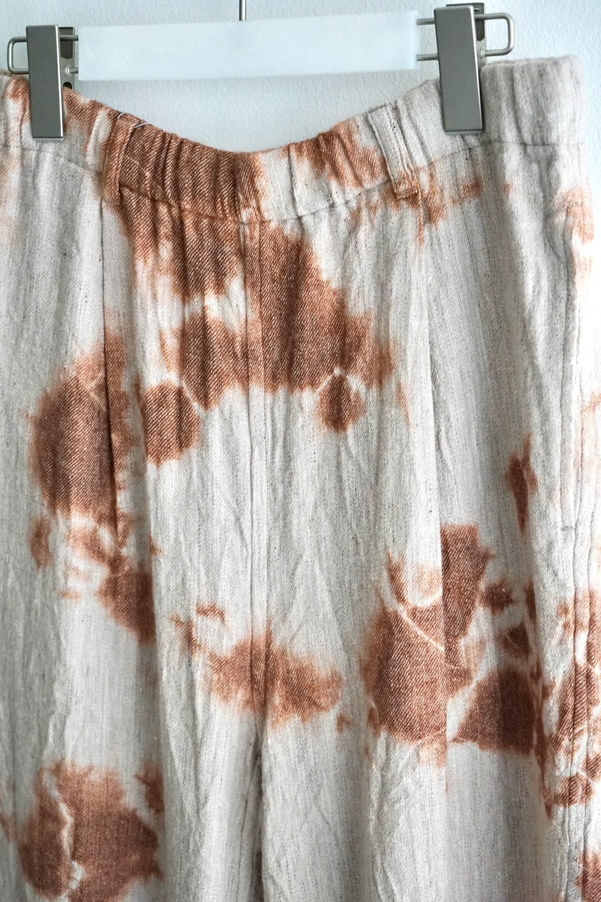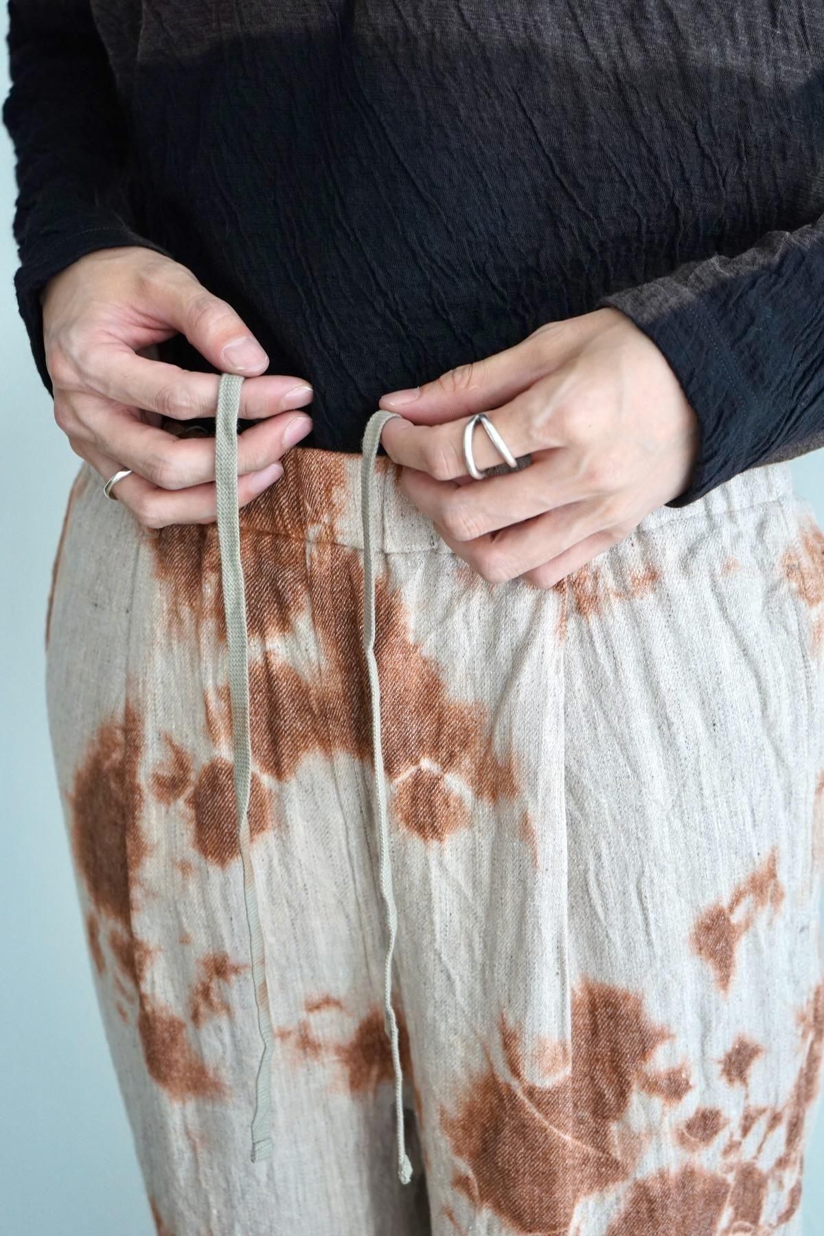 suzusan / Linen Wool Twill Drawstring Wide Pants / Brown - Greige