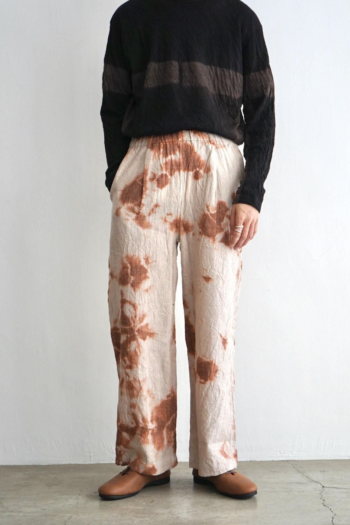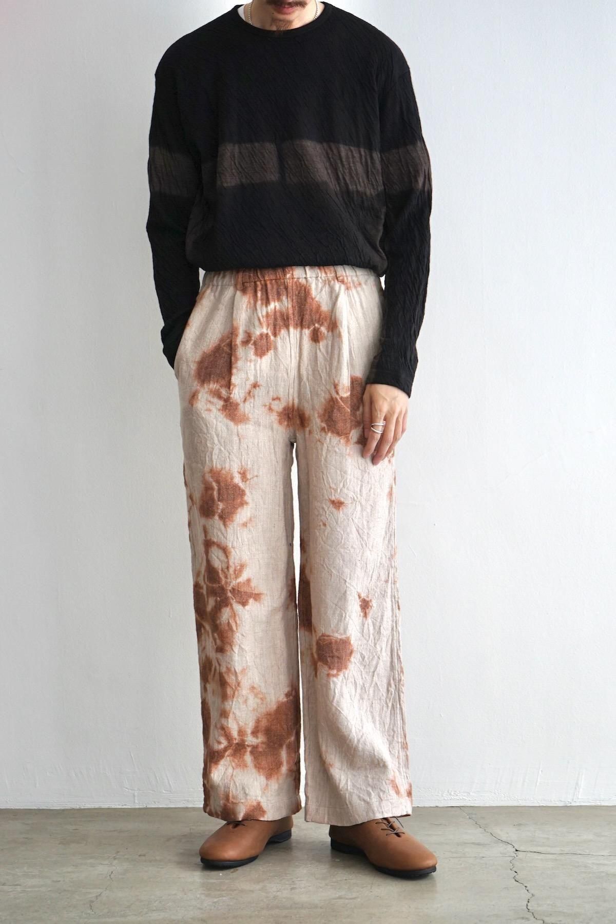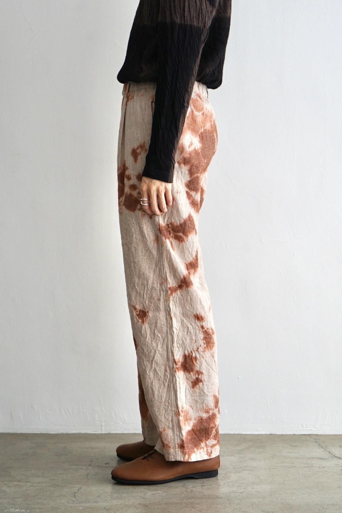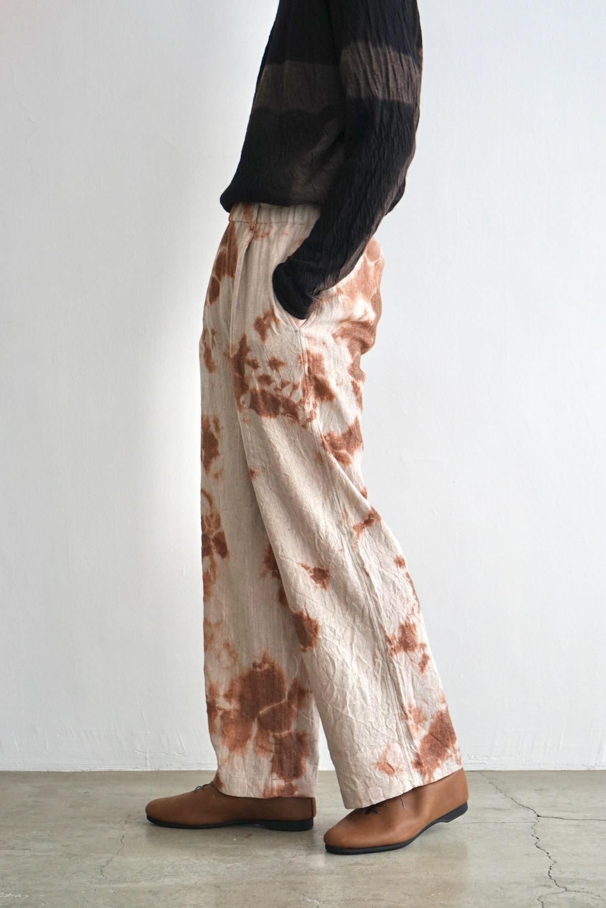 suzusan / Linen Wool Twill Drawstring Wide Pants / Brown - Greige
