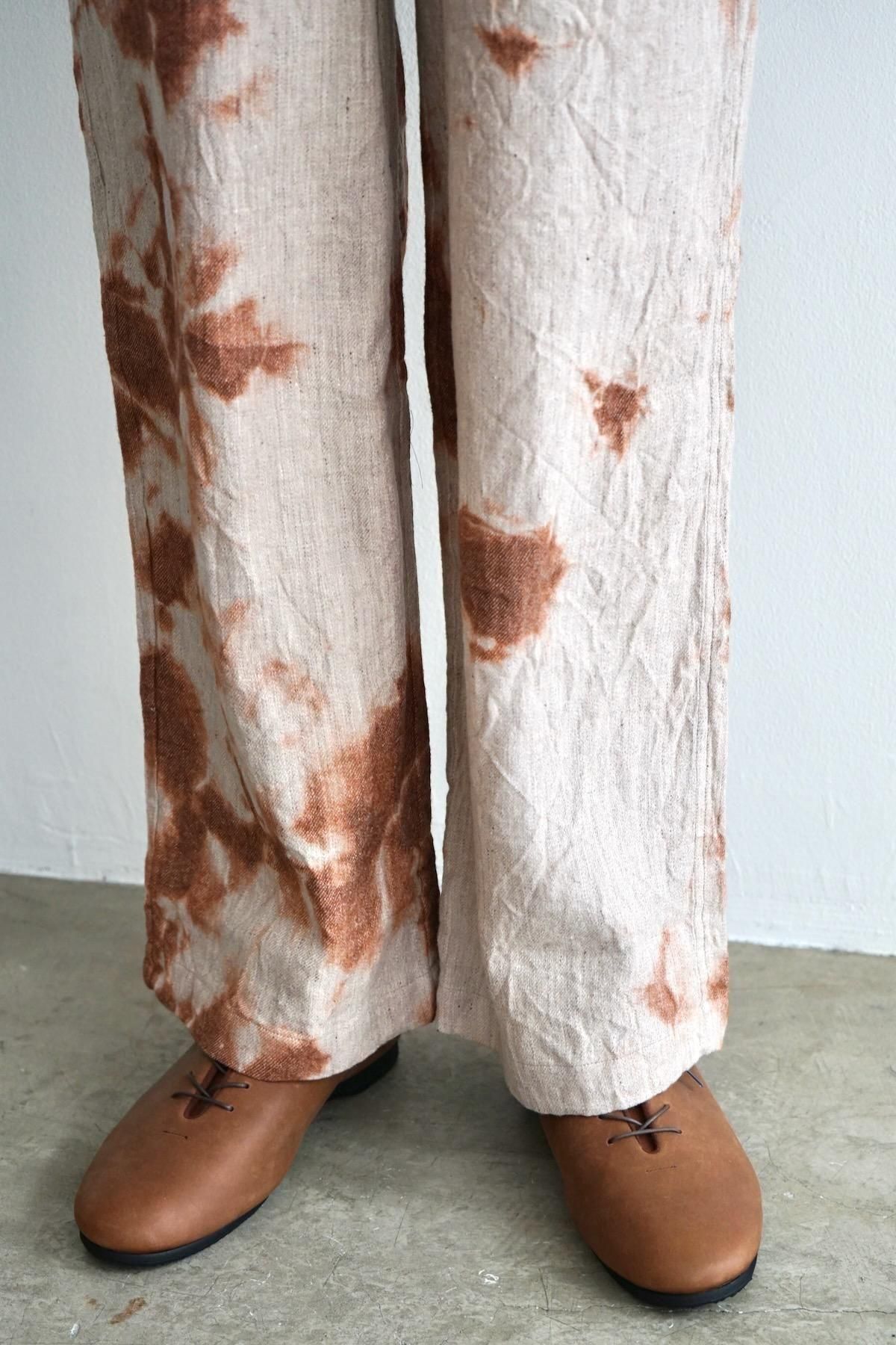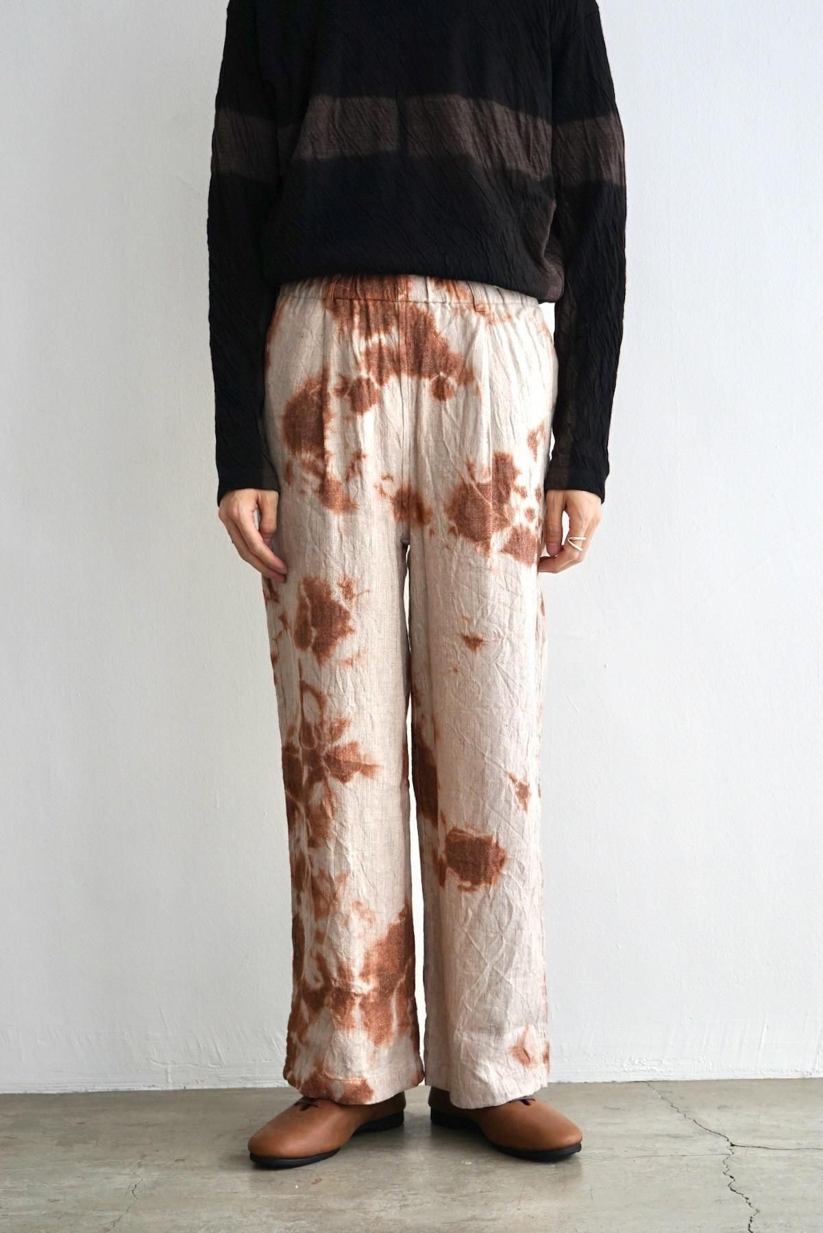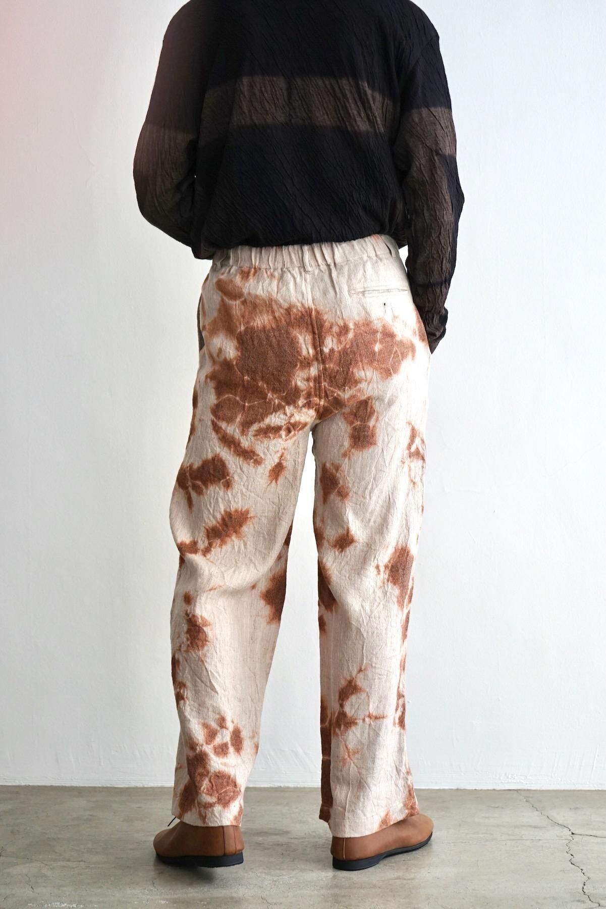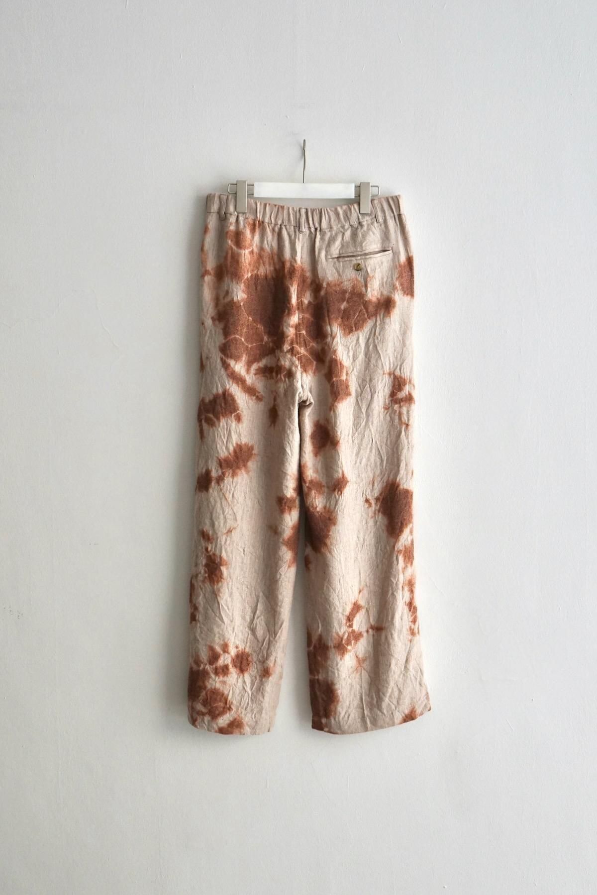 suzusan / Linen Wool Twill Drawstring Wide Pants / Brown - Greige