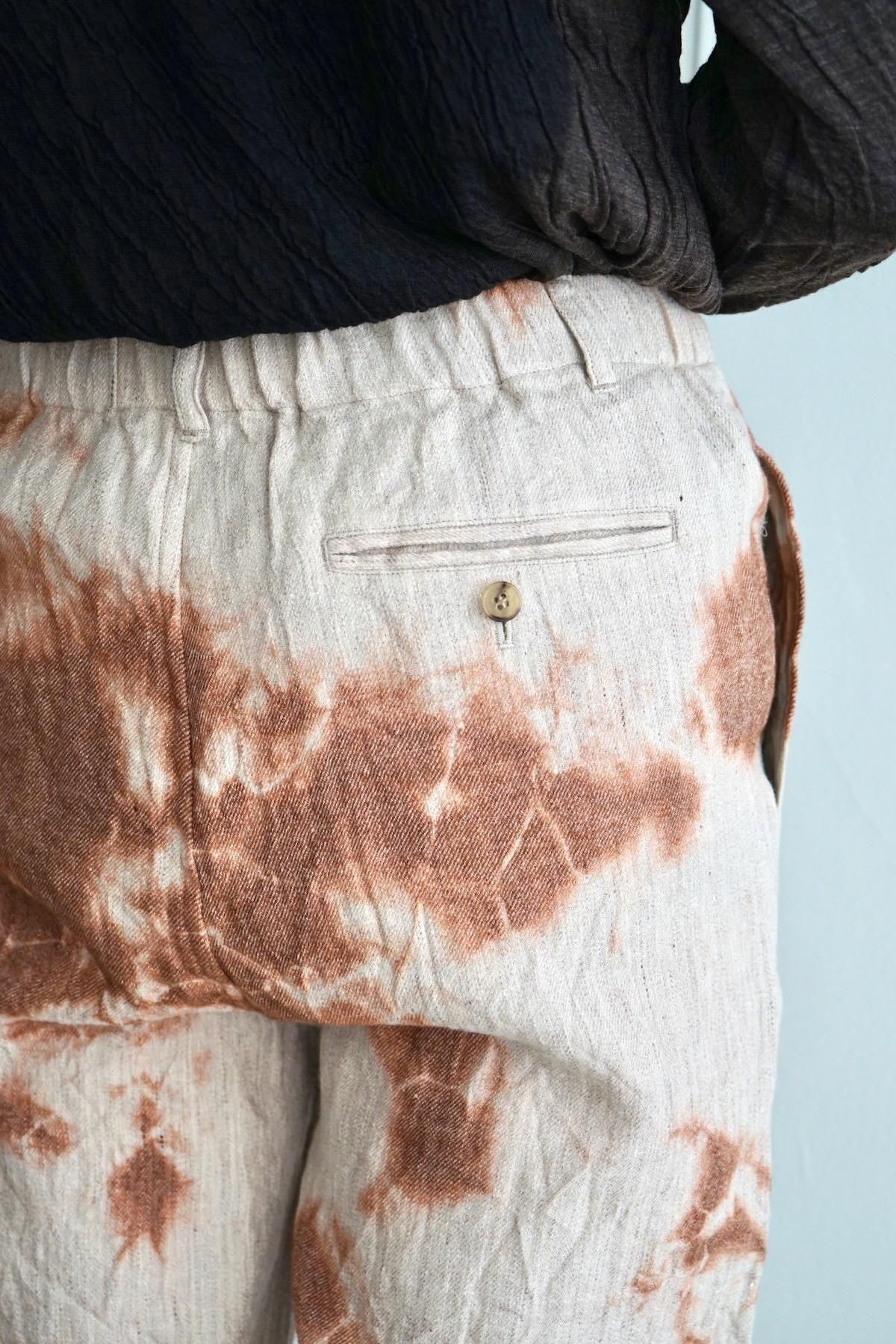 またリネンの持つネップや節がそれを際立て、より素朴な雰囲気を出しています。リネンのもつコシやシャリ感、ウールの暖かさと反発性を上手くミックスした尾州ならではの上質な生地を使用しています。