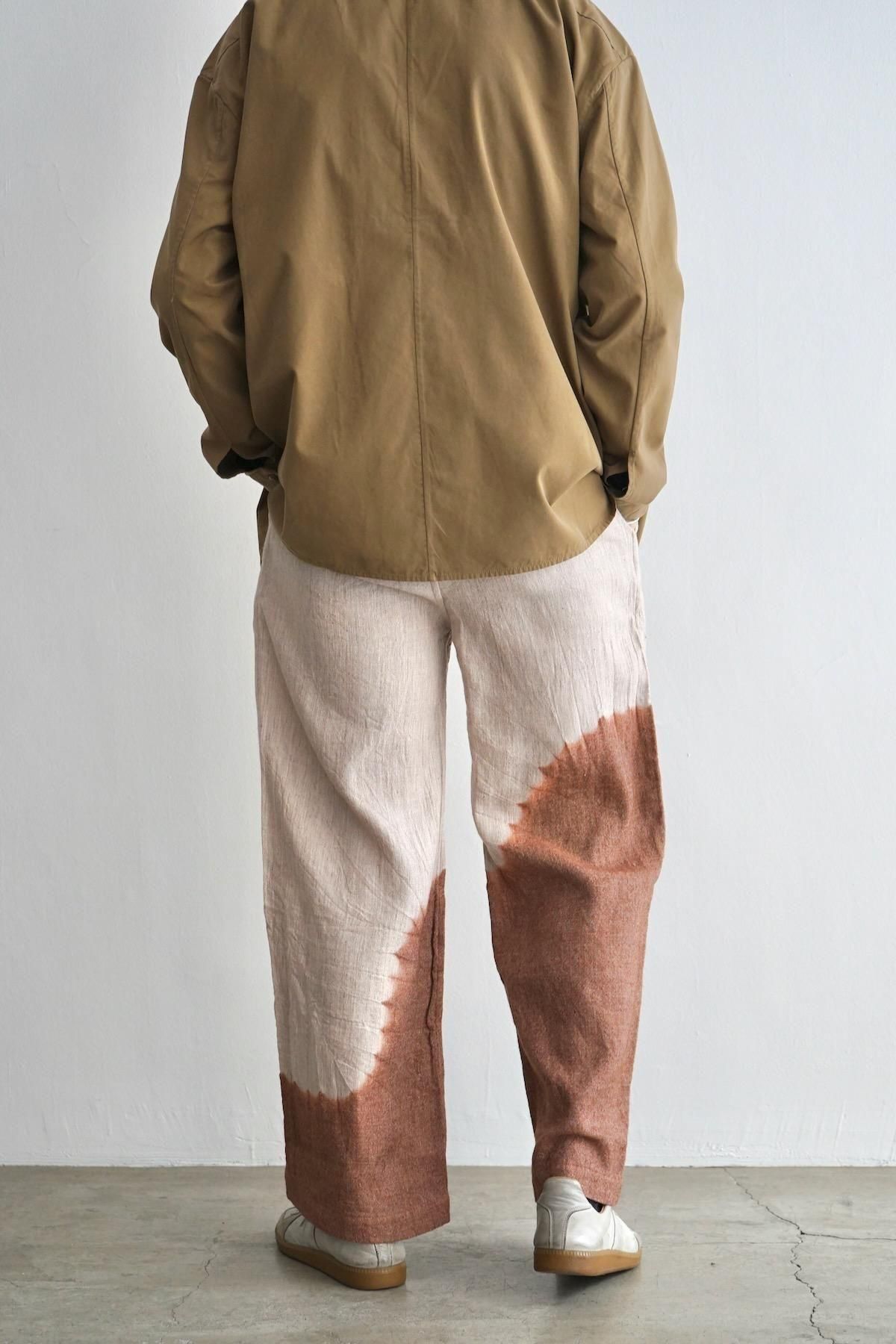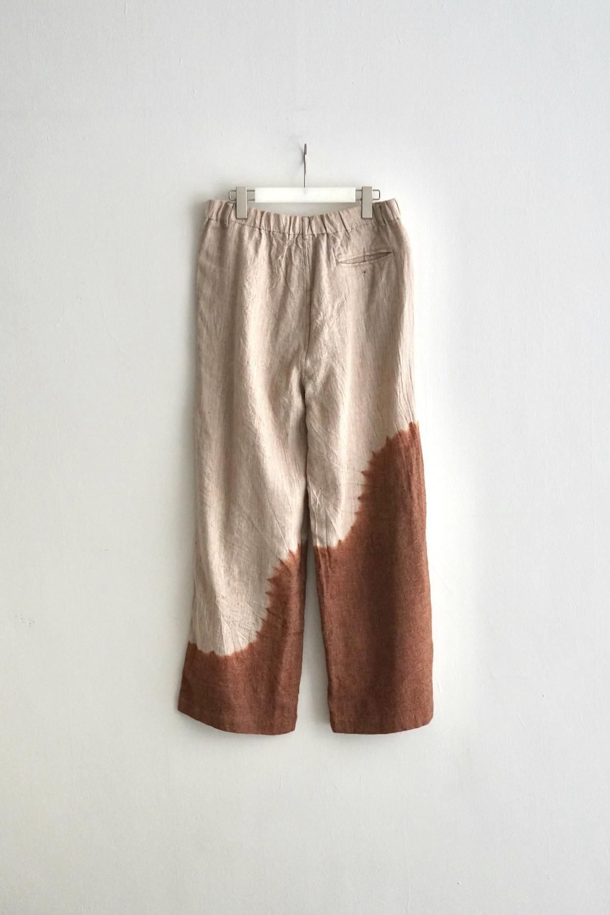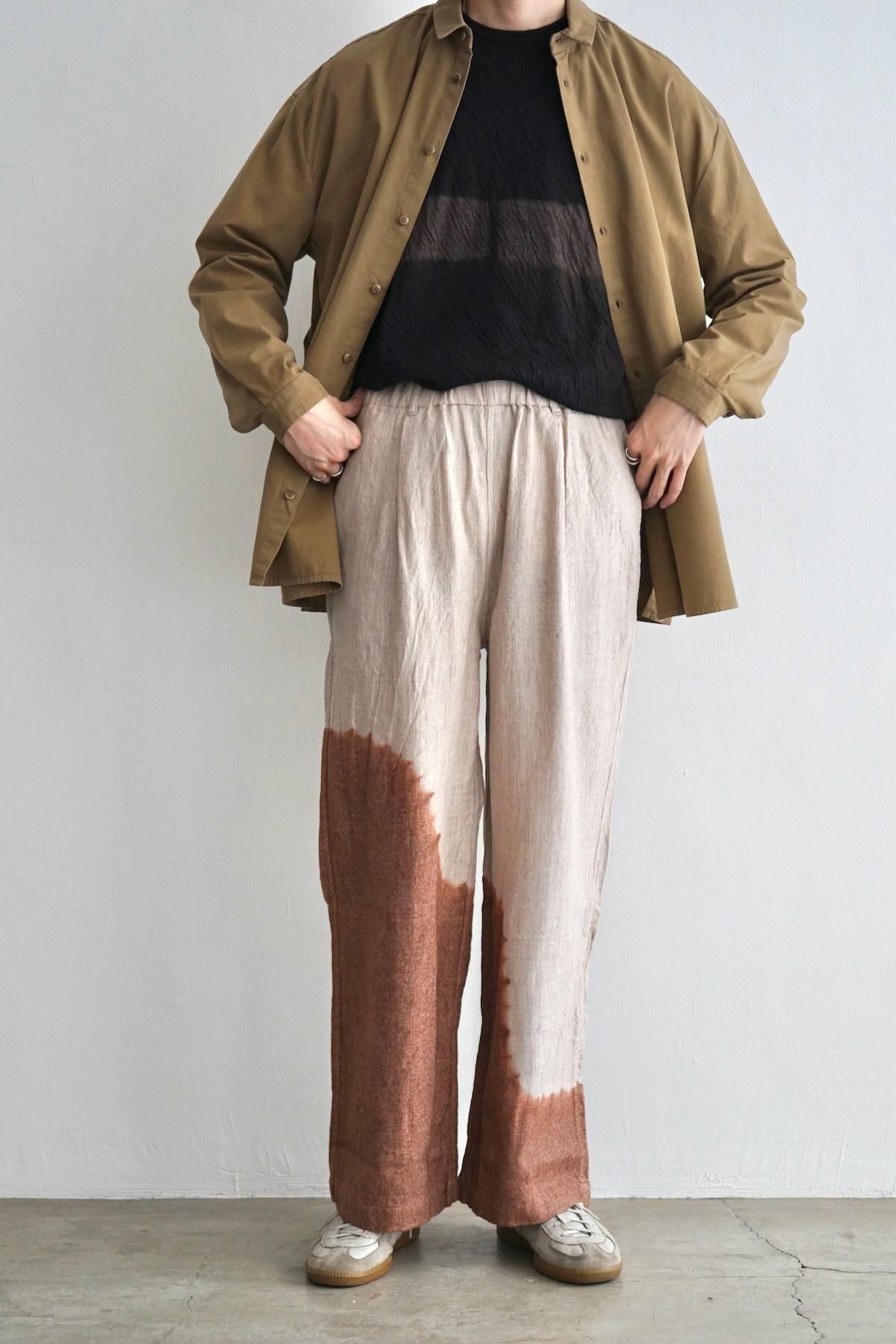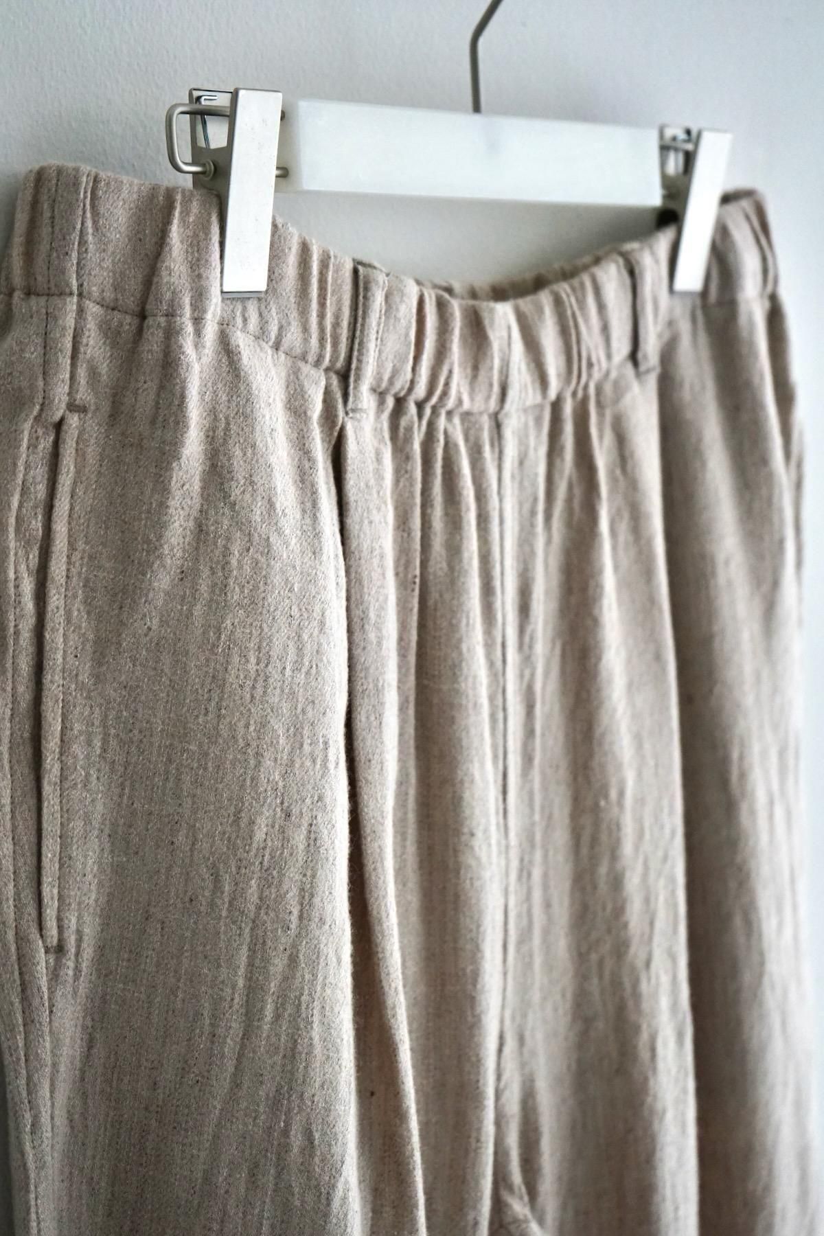 suzusan / Linen Wool Twill Drawstring Wide Pants / Brown - Greige