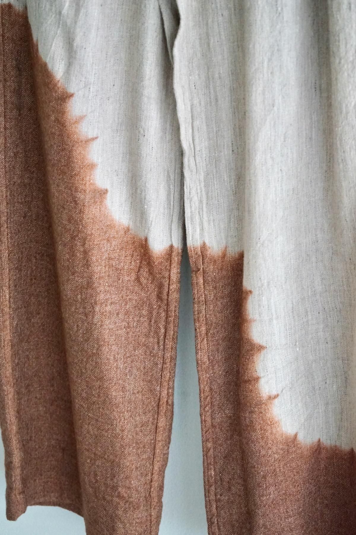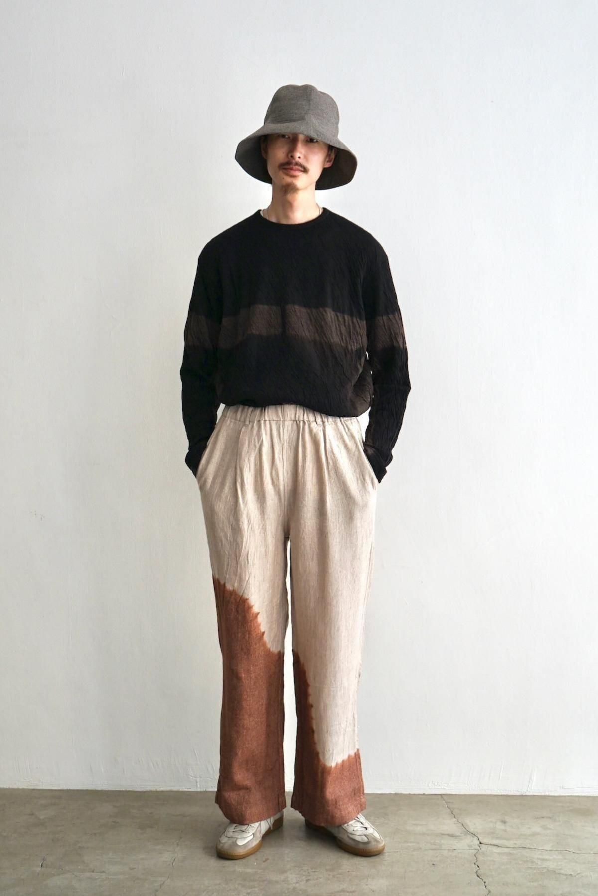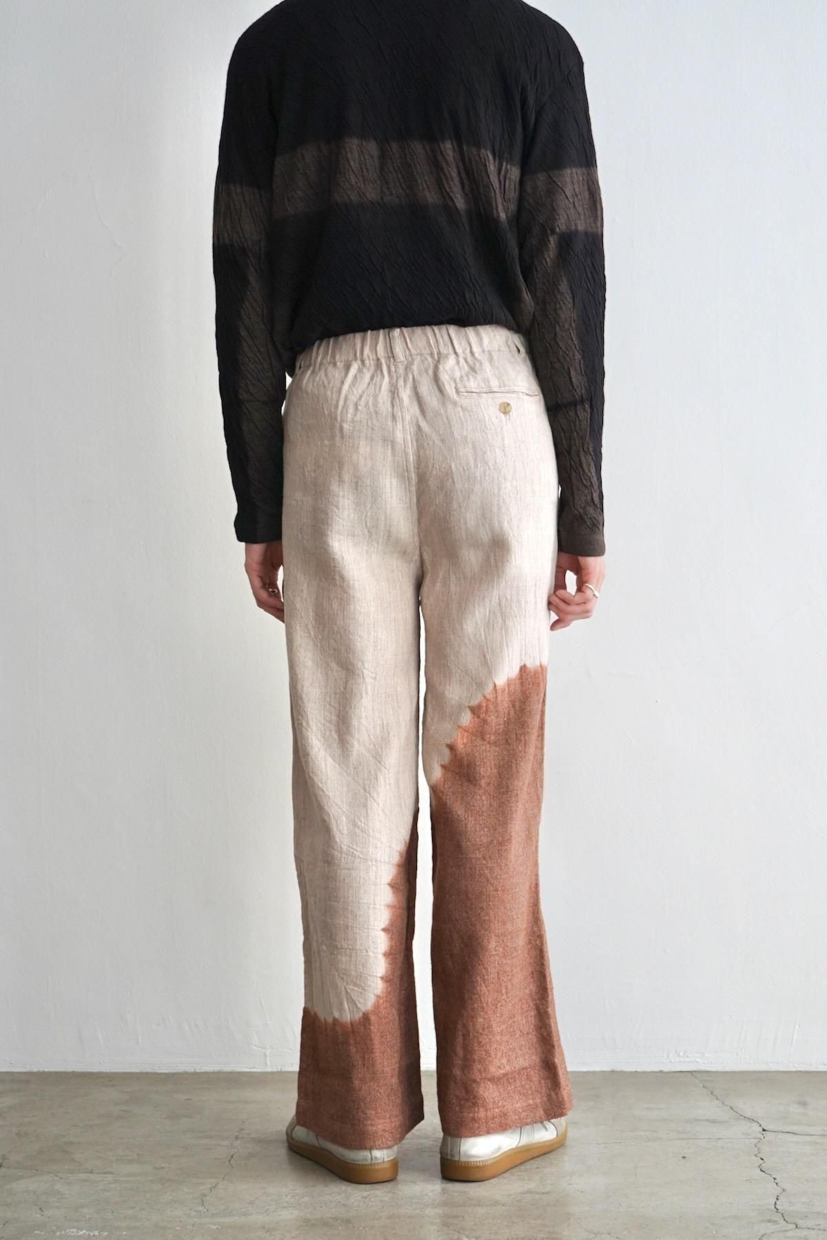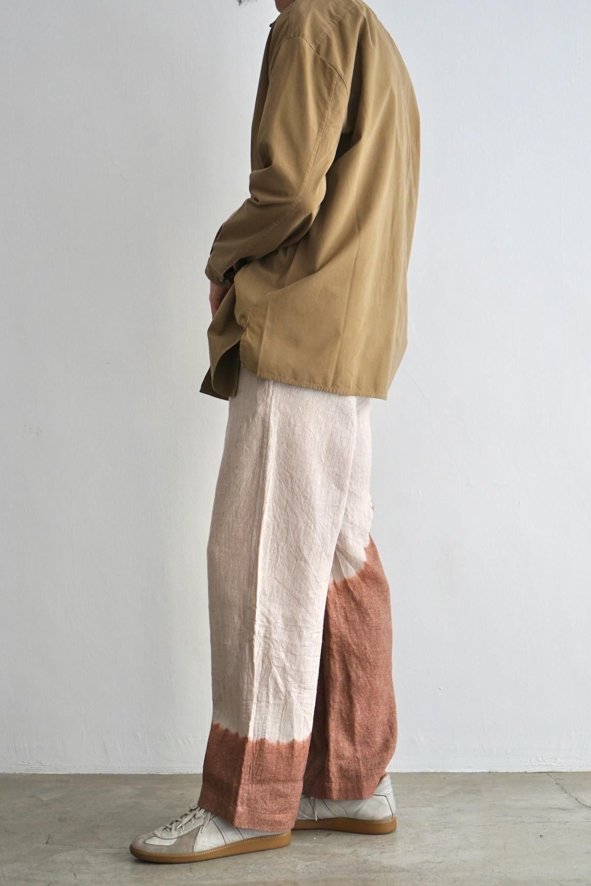 suzusan / Linen Wool Twill Drawstring Wide Pants / Brown - Greige