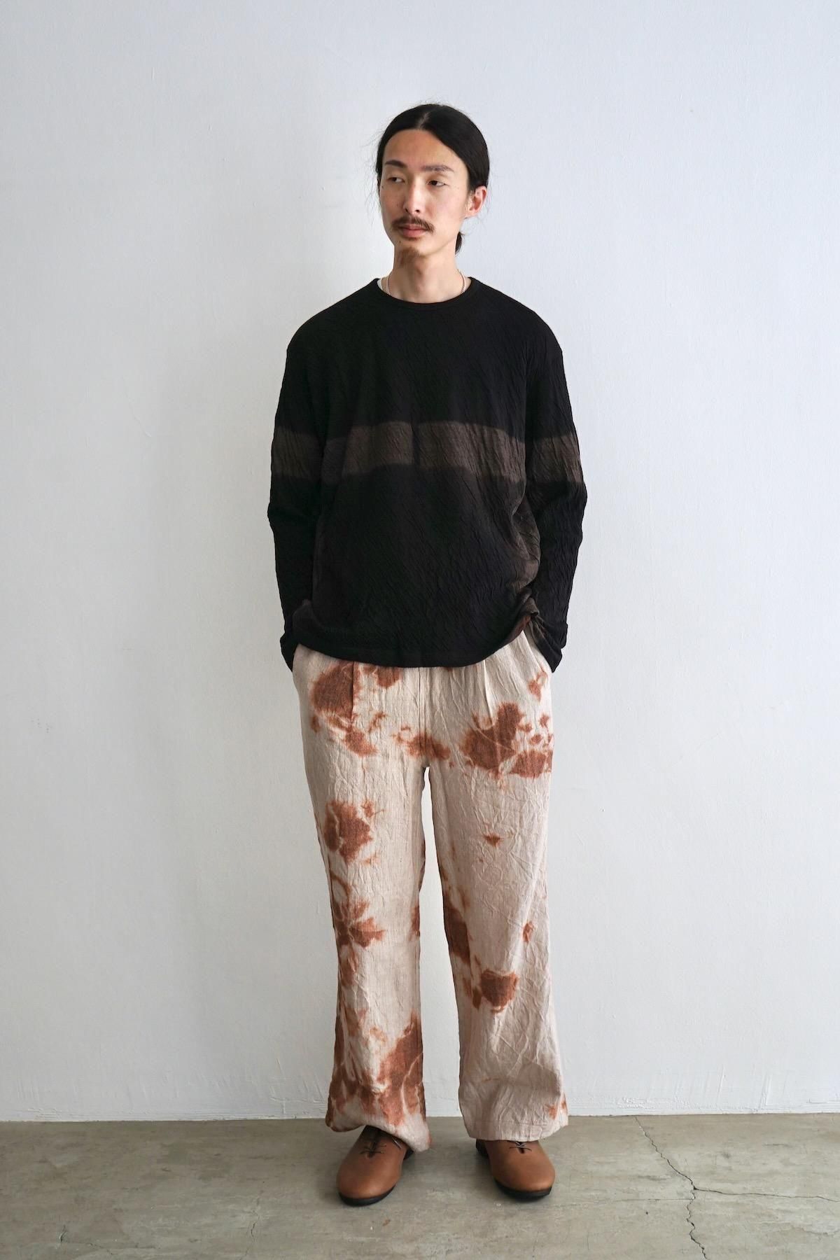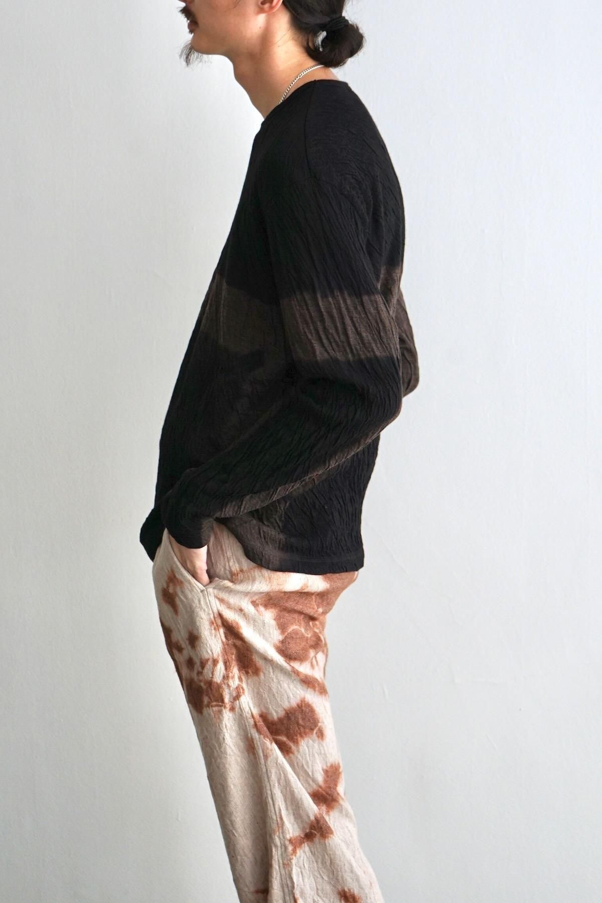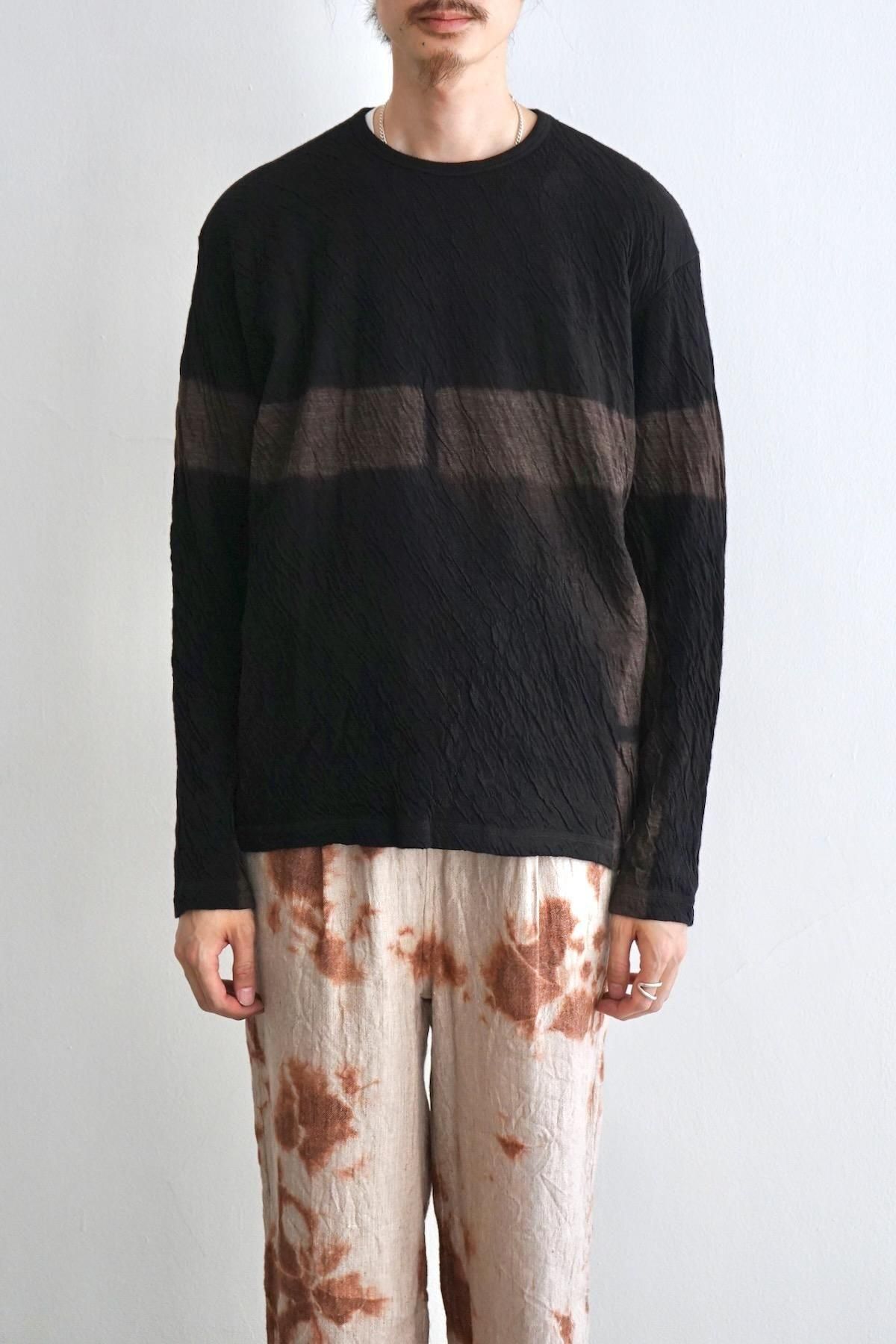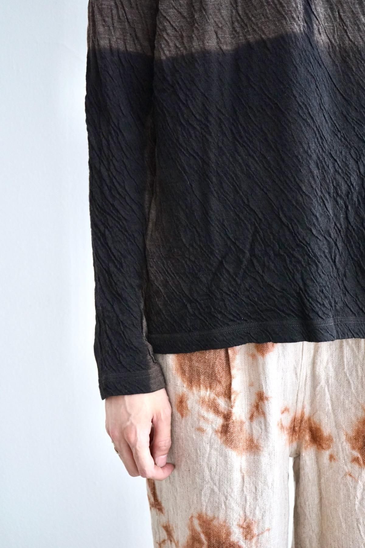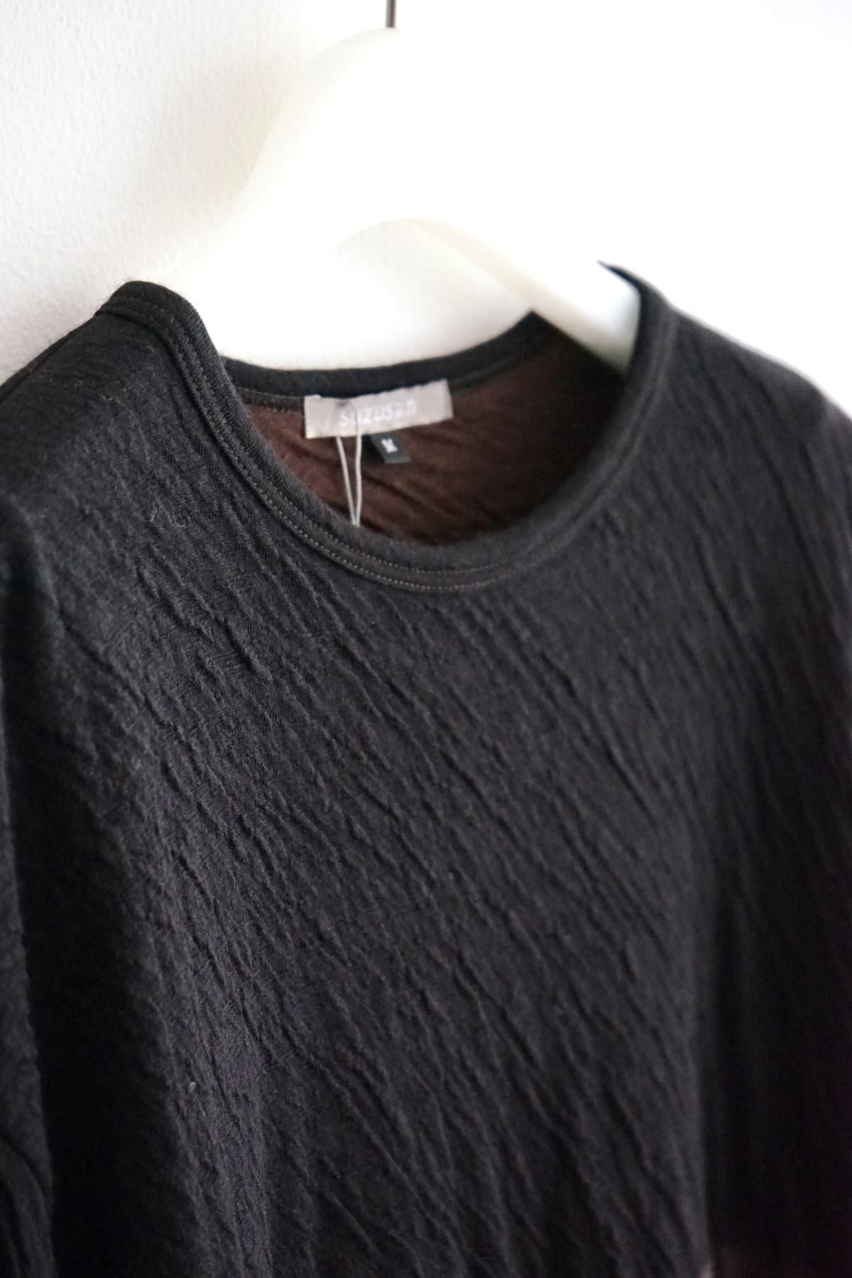 suzusan / Dual Layered Wool Cotton Jersey Long Sleeve T-Shirt / Black - Raw Umber