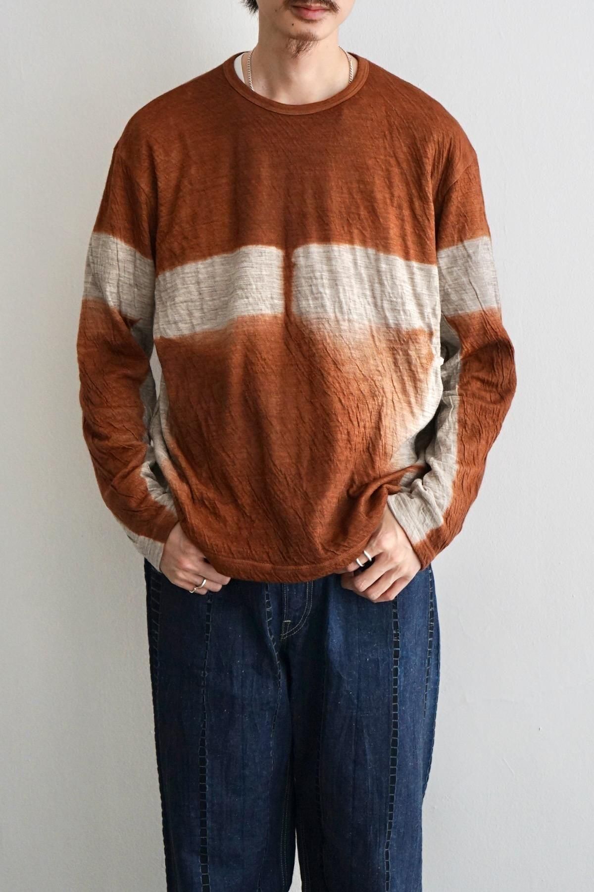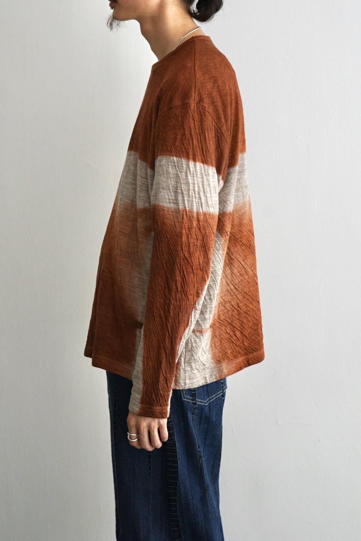 suzusan / Dual Layered Wool Cotton Jersey Long Sleeve T-Shirt / Brown - Greige