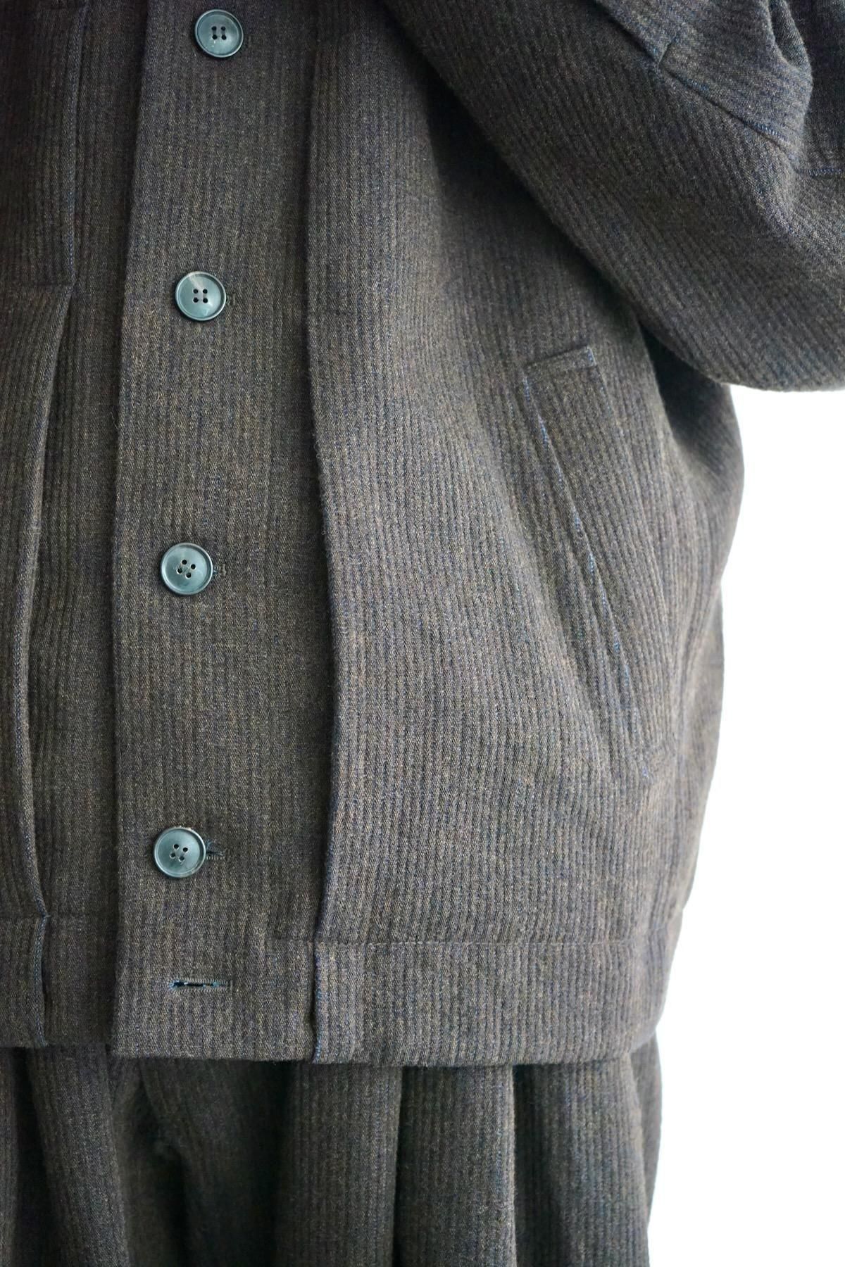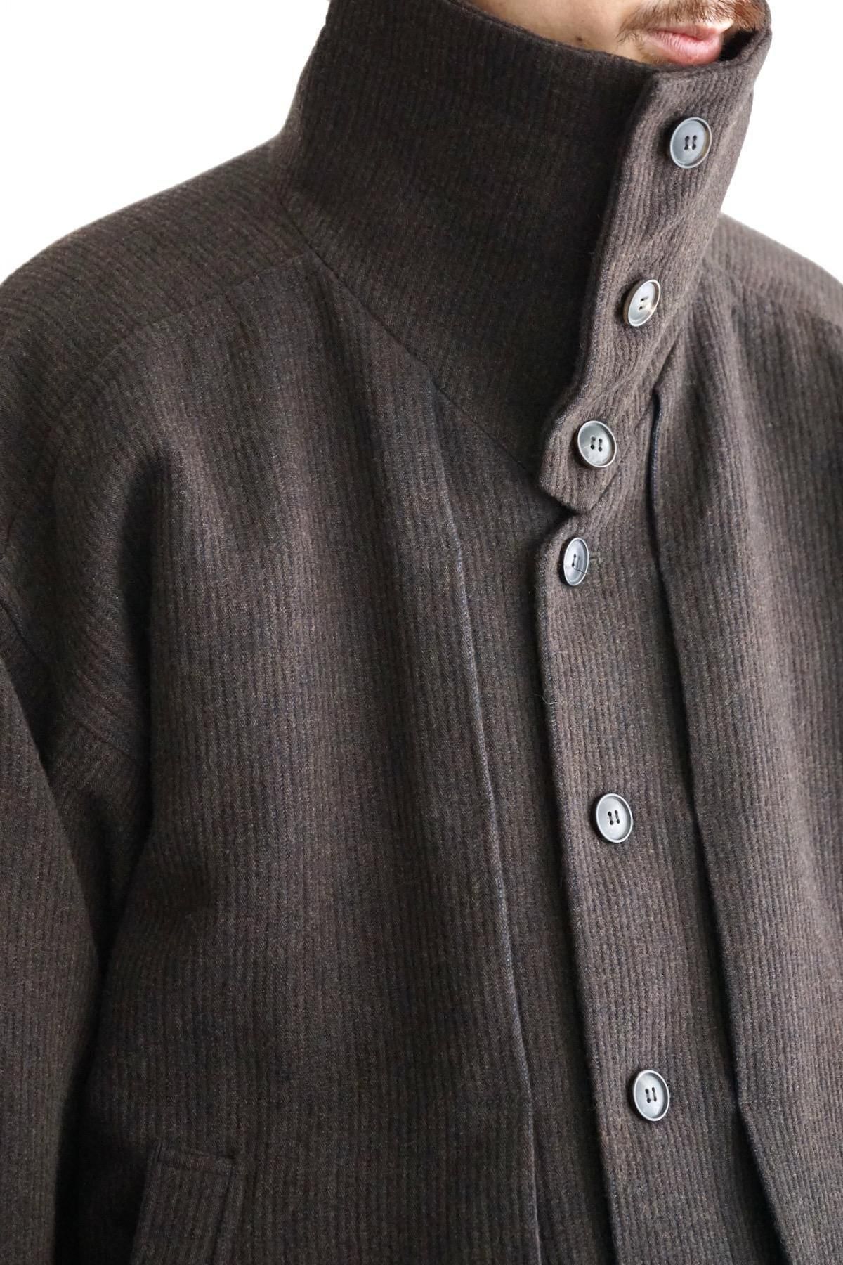 Standing Collar And Front Pleat (JACKET#61) / Eggplant/Indigo