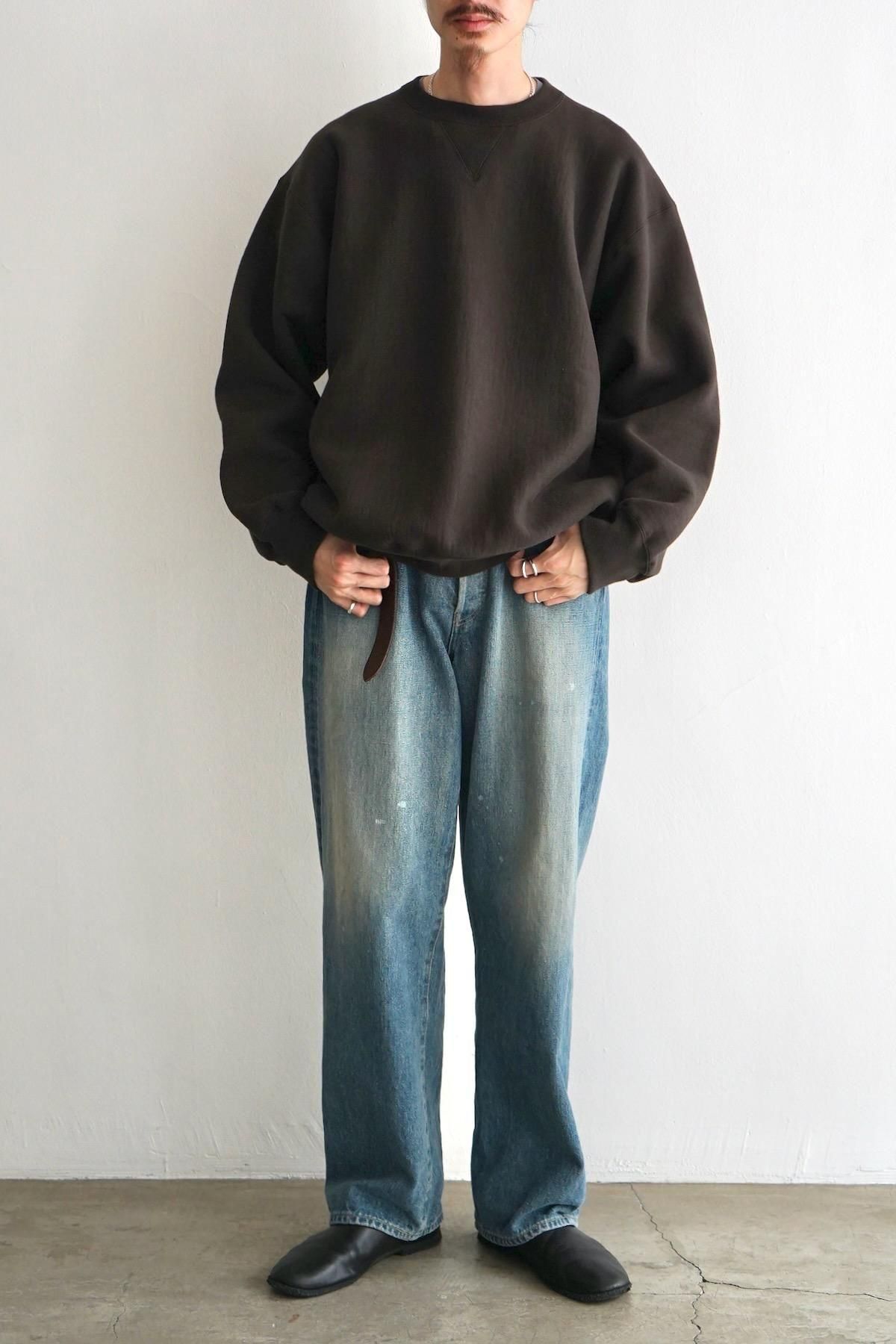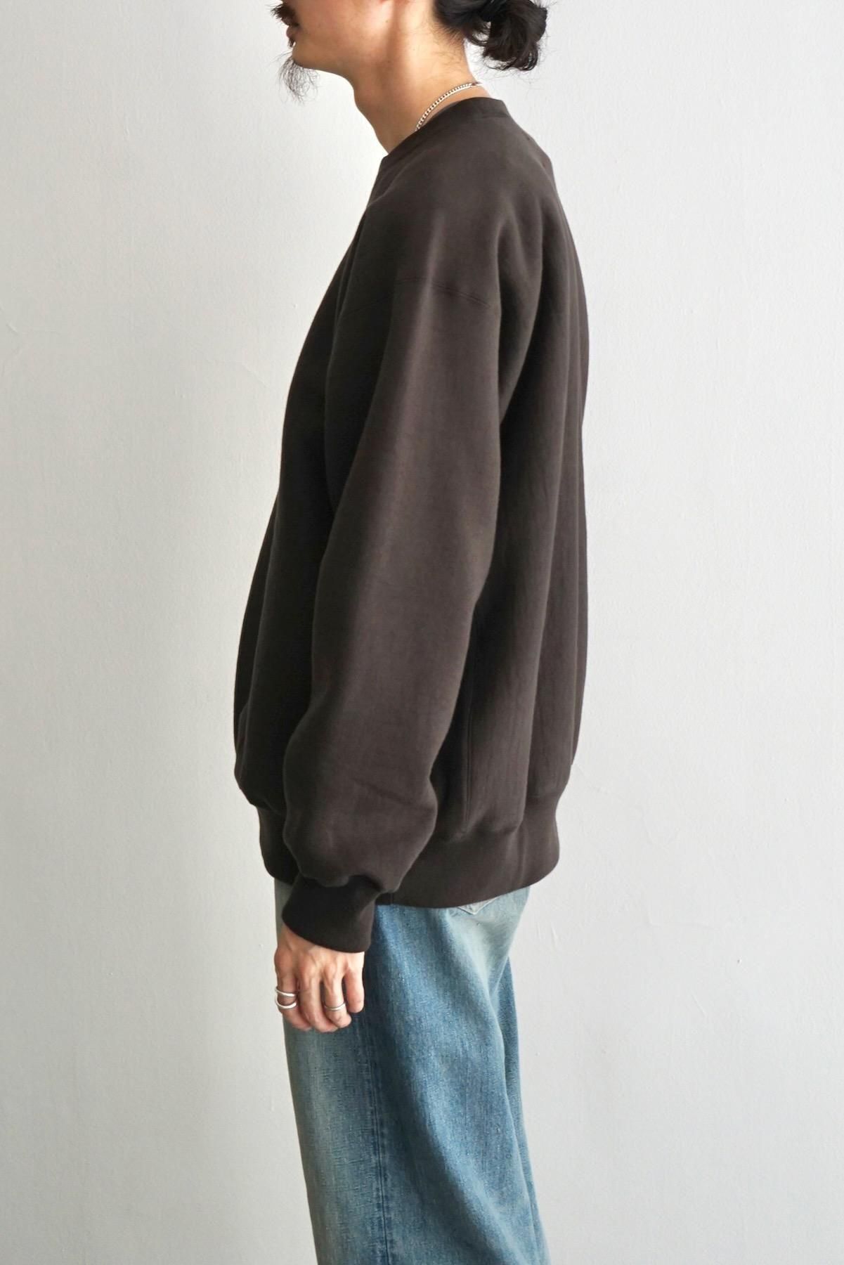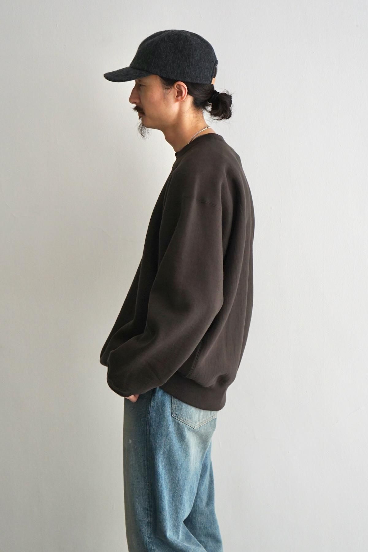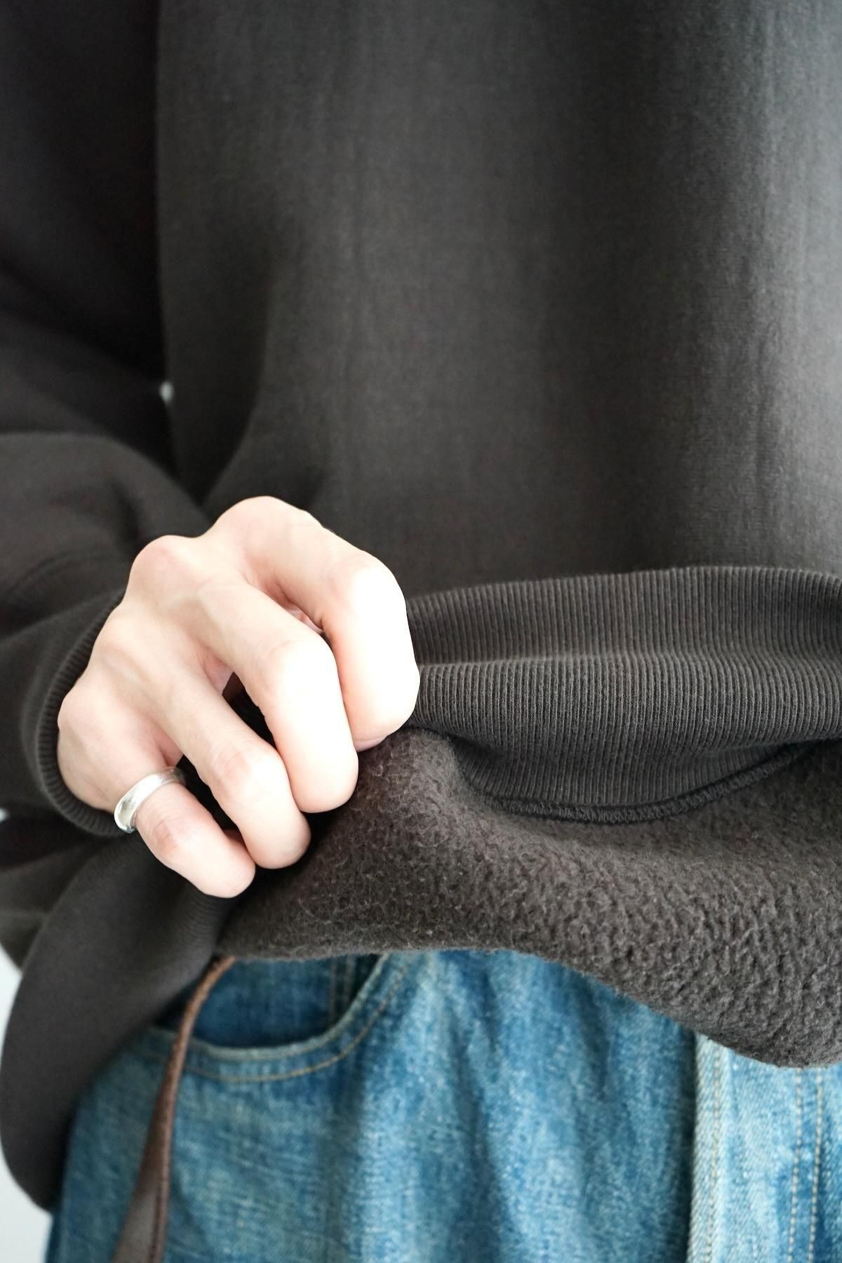 和歌山のニッターさんに「吊り編み機」で編み上げて頂いたオリジナルの吊り編み3飛び裏毛。仕上げに裏起毛を施しています。 しっかりと度目を詰めて編立てた3飛び裏毛ですが、吊り編みならではの空気を含んだふっくらとした生地感と、 着用と洗濯を重ねてもダレずに身体に馴染むキックバック( 伸縮性 )が特徴です。 着用を繰り返す度に、どんどん生地の風合いが増し、自分の身体に馴染んで来ます。 杢糸に関しては、原料を自ら選定して、オリジナルでブレンドして紡績をした、完全オリジナルの杢糸を使用しております。