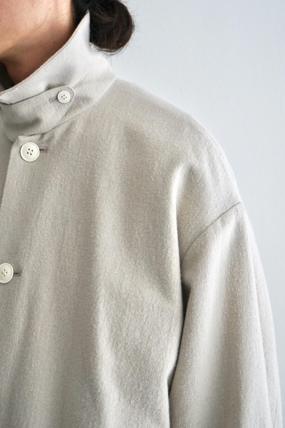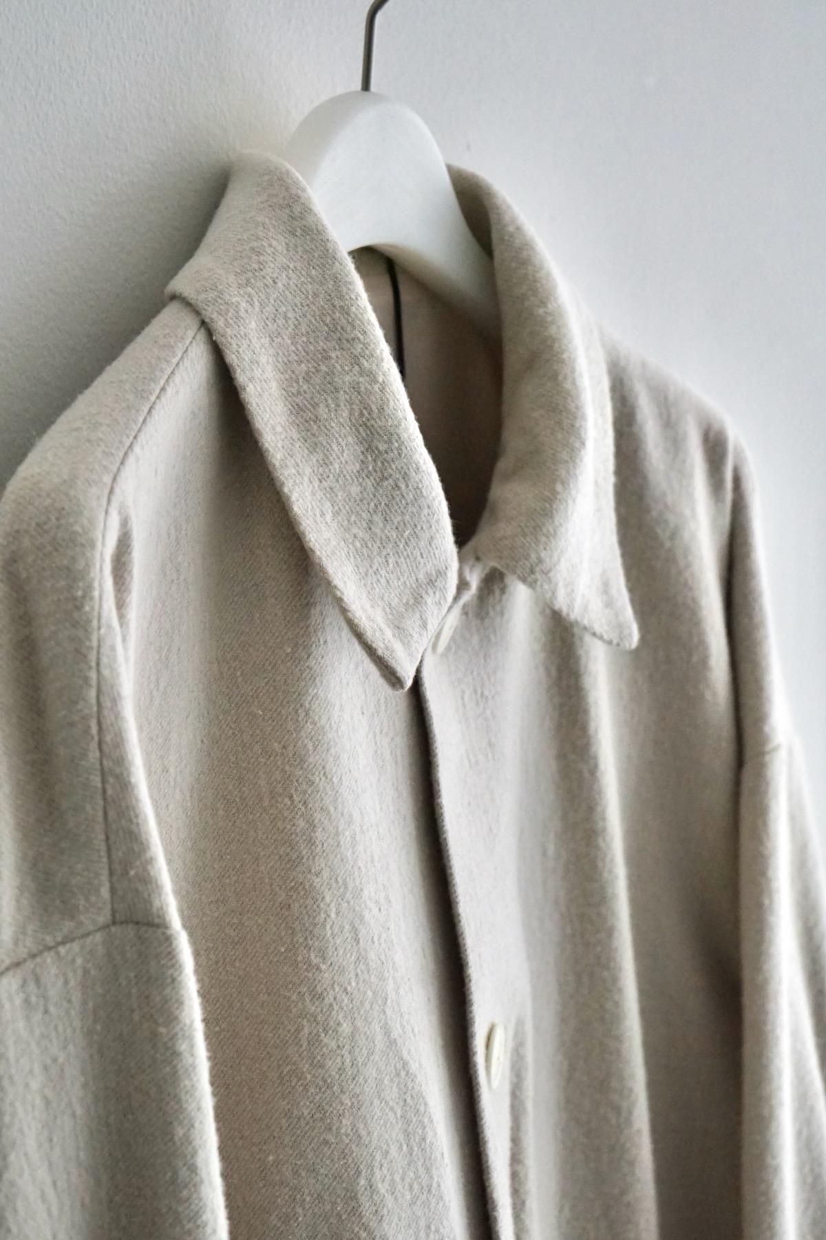 経糸にローシルク、緯糸にコットンを使用したサージ織物。仕上げに両面起毛を施し、温かみのあるフランネルに仕上げました。