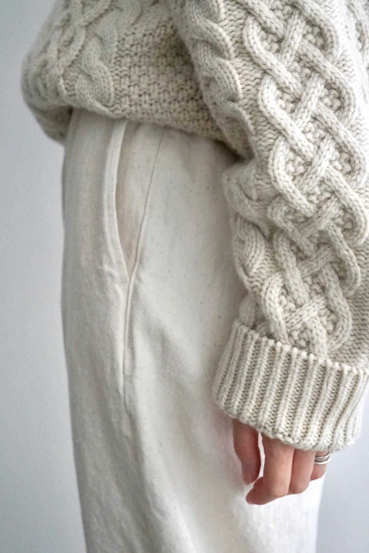 アイテムはユニセックスとして展開しており、毎シーズンテーマは設けずできるだけ肩の力を抜いて、無駄なデザインをせず本質に寄り添う事を心がけて洋服を作りだしています。