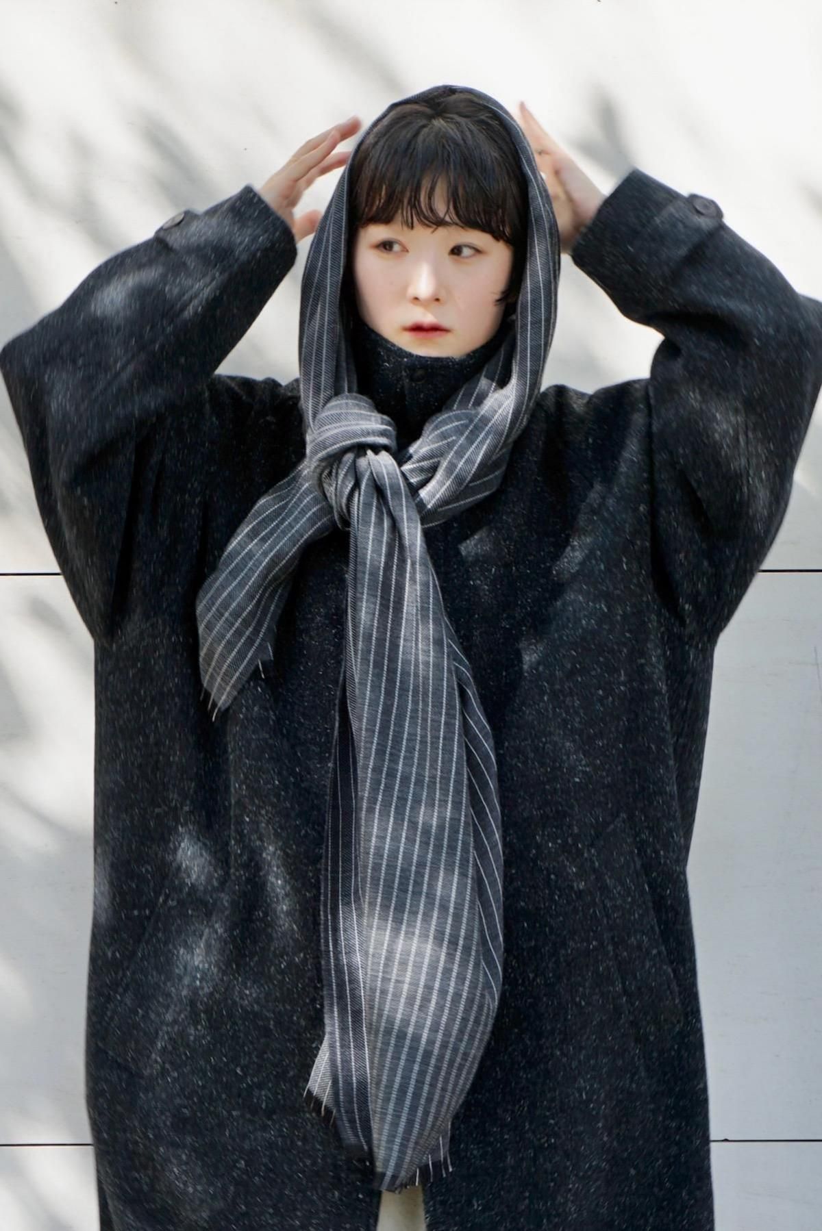 山形県の米沢市にある歴史のある機屋にて、旧式の織機を使用して製織したシルクウールスカーフ。