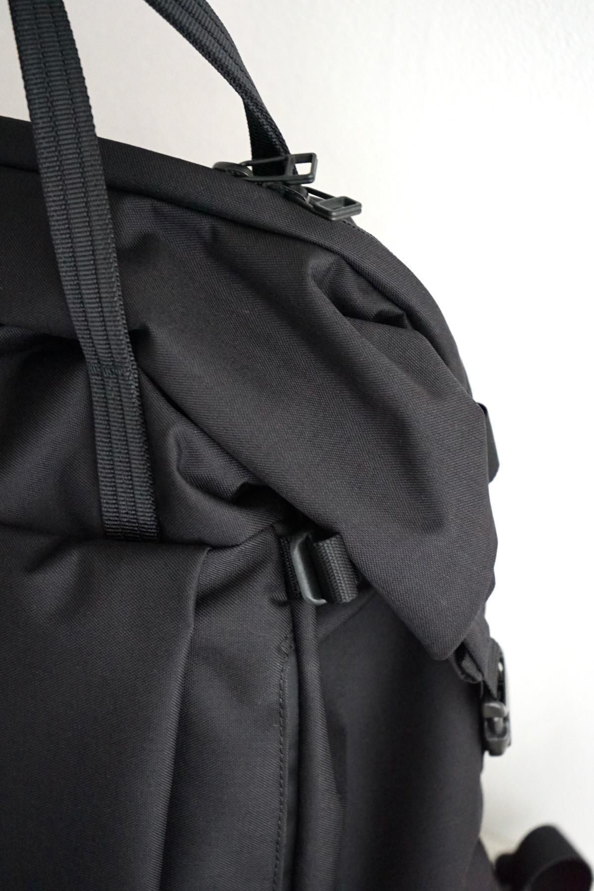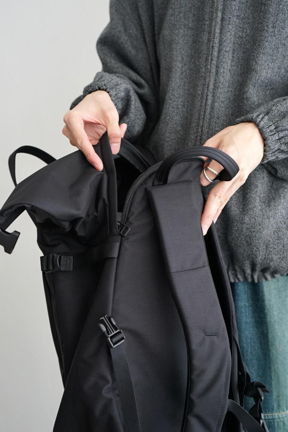 メッセンジャー由来のロールトップは上蓋部分を丸めて留めることで容量を調節できる米袋のような鞄です。