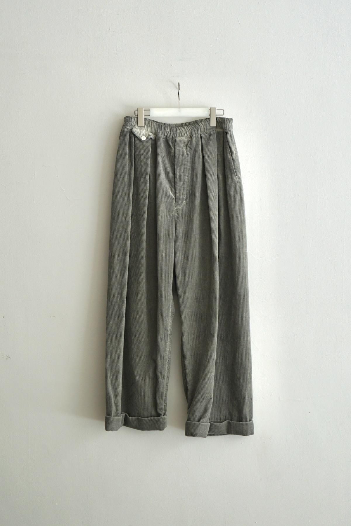 ヴィンテージのクリケットの競技用トラウザーズをベースに極太のシルエットにアレンジをしました。