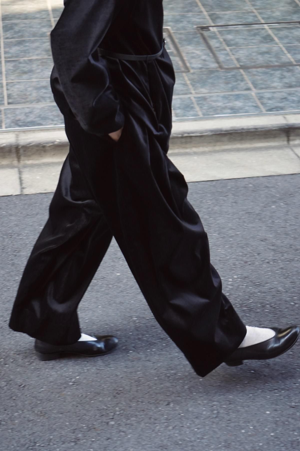 TENNE HANDCRAFTED MODERN / 3 tuck wide pants / Press velvet black