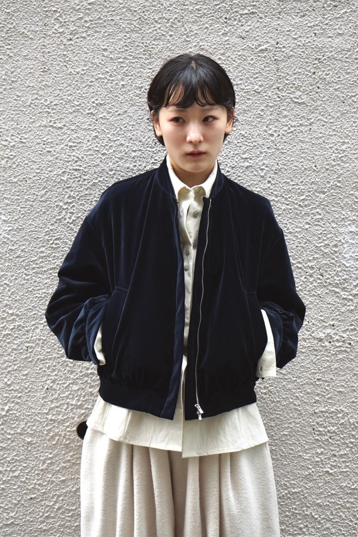 TENNE HANDCRAFTED MODERN / velvet padded blouson / navy