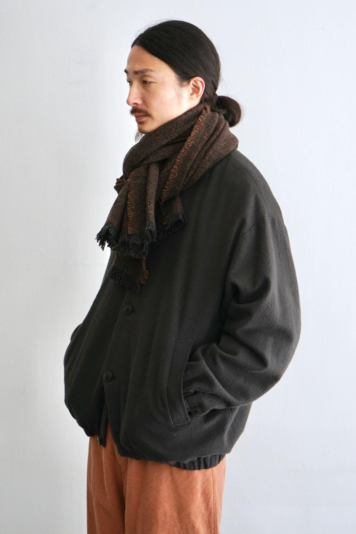 尾州の歴史ある機屋にて、旧式の織機を使用して製織した異なる色の紡毛TOP糸をミックスさせた大判ストール。